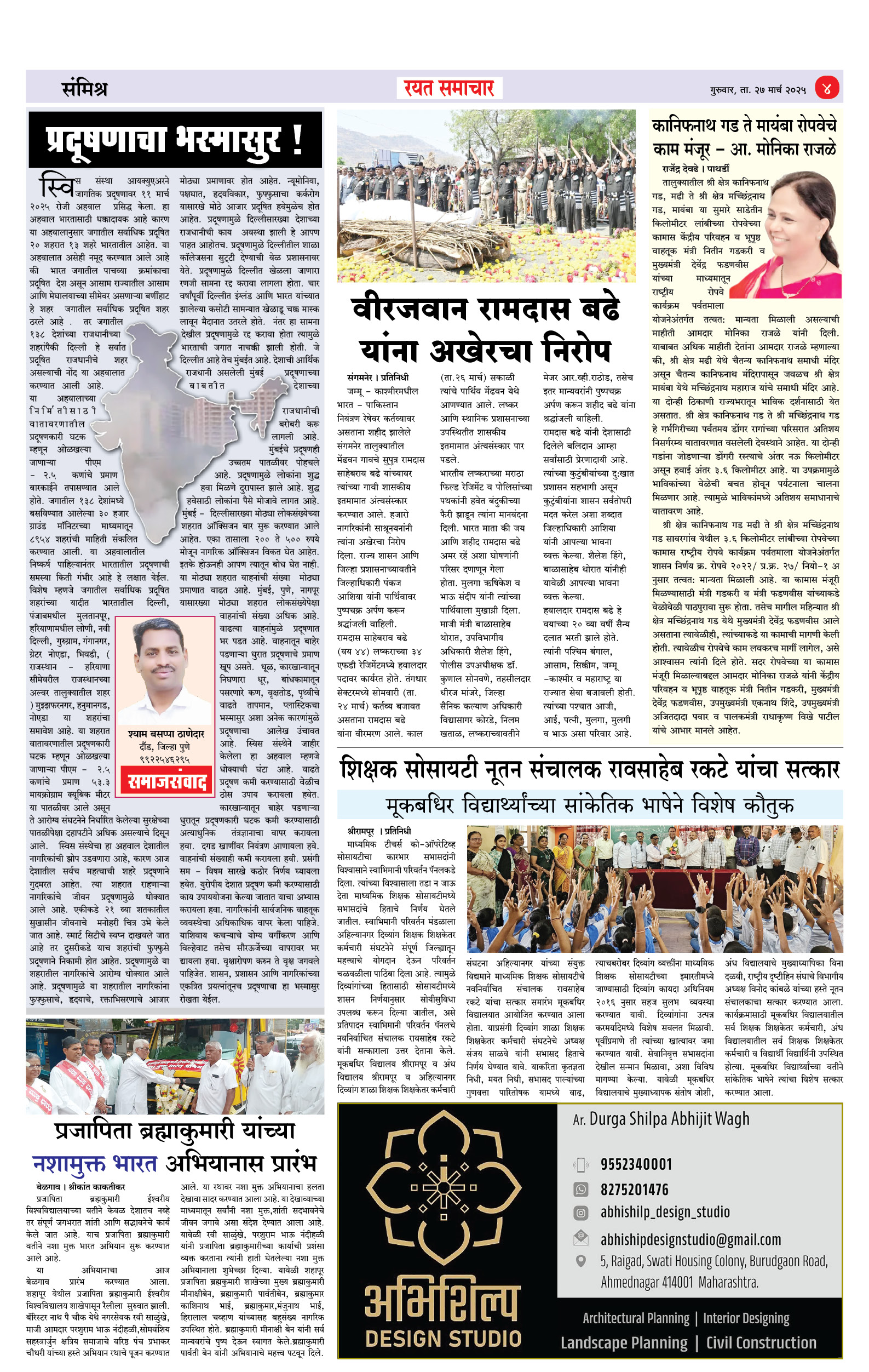 RSE: आजचा रयत समाचार वाचा 27March2025 Page: 4 March 27, 2025 RSE: आजचा रयत समाचार वाचा 27March2025मनोरंजनासह प्रबोधनासाठी rayatsamachar, ahilyanagar, ahmednagar, latest news, breaking news, goa news, india news << First << 1 2 3 4 >> Last >> Page 1Page 2Page 3Page 4 × RSE: आजचा रयत समाचार वाचा 27March2025 1MainPage2CityPage3DistrictPage4Maharashtra Full PDF << First << 4 >> Last >> 1MainPage2CityPage3DistrictPage4Maharashtra