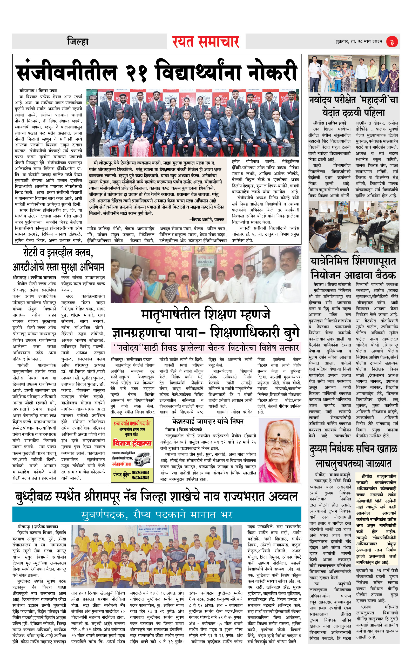 RSE: आजचा रयत समाचार वाचा 28March2025 आचार्यसम्राट.आनंदऋषीजी महाराज स्मृतिदिन Page: 3