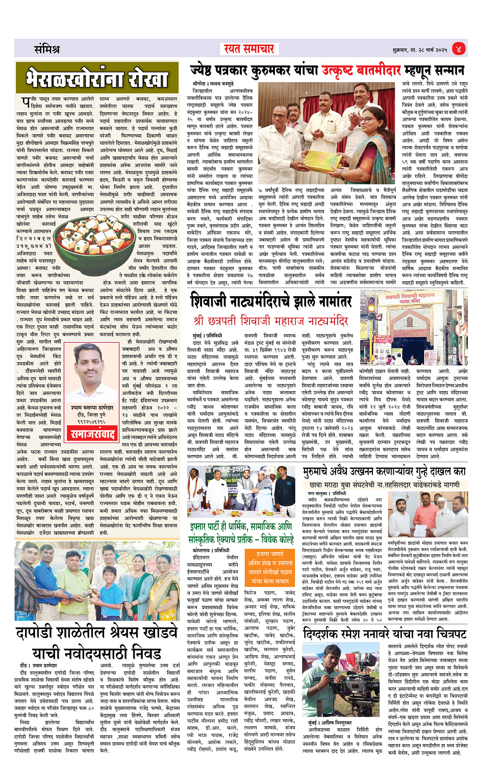 RSE: आजचा रयत समाचार वाचा 28March2025मनोरंजनासह प्रबोधनासाठी rayatsamachar, ahilyanagar, ahmednagar, latest news, breaking news, goa news, india news