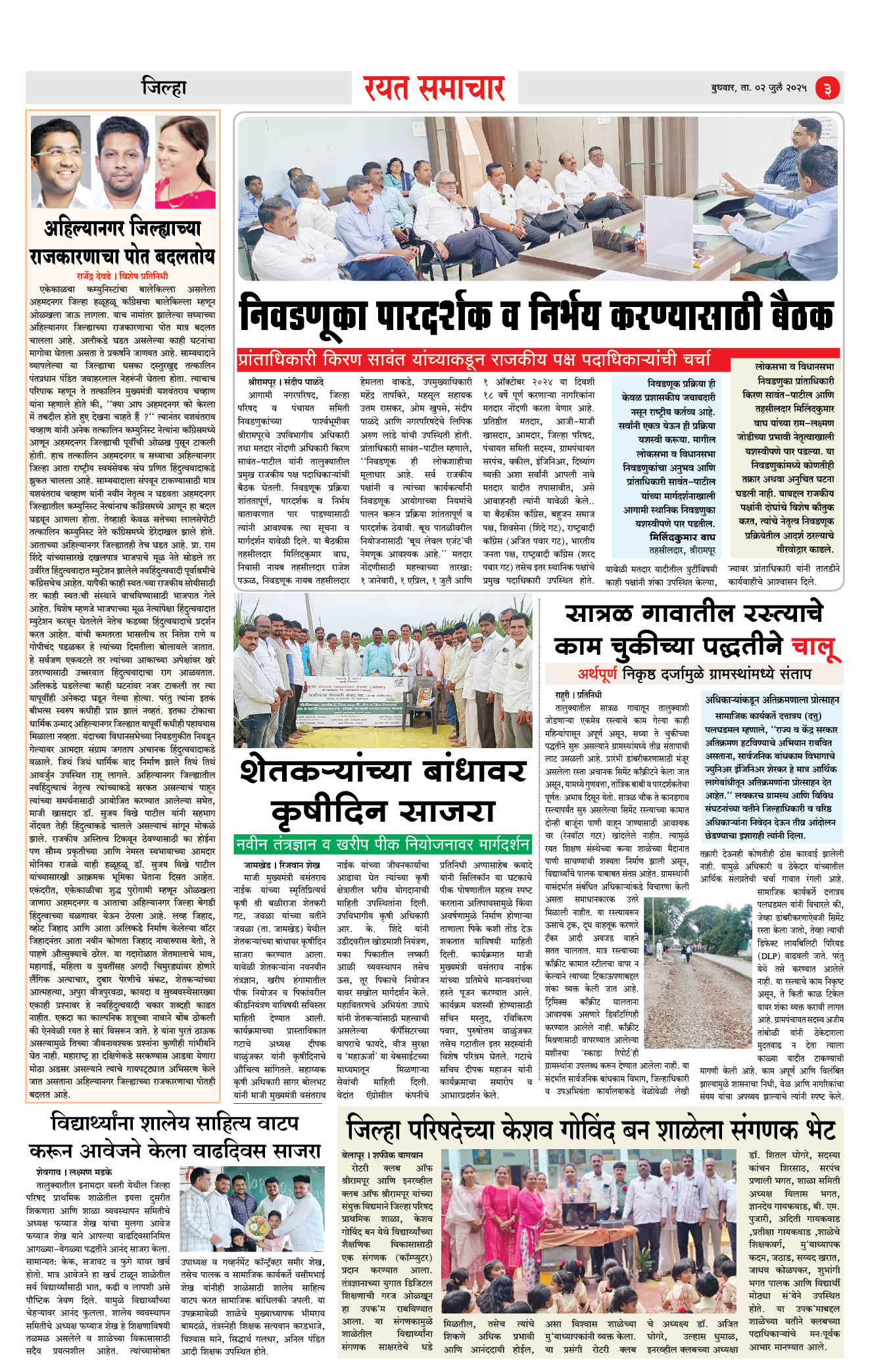 RSE: आजचा रयत समाचार वाचा 02JULY2025 Page: 3 July 02, 2025 << First << 1 2 3 4 >> Last >> Page 1Page 2Page 3Page 4 × RSE: आजचा रयत समाचार वाचा 02JULY2025 1_MAIN PAGE2_CITY PAGE3_DISTRICT PAGE4_MAHARSHTRA PAGE << First << 3 >> Last >> 1_MAIN PAGE2_CITY PAGE3_DISTRICT PAGE4_MAHARSHTRA PAGE