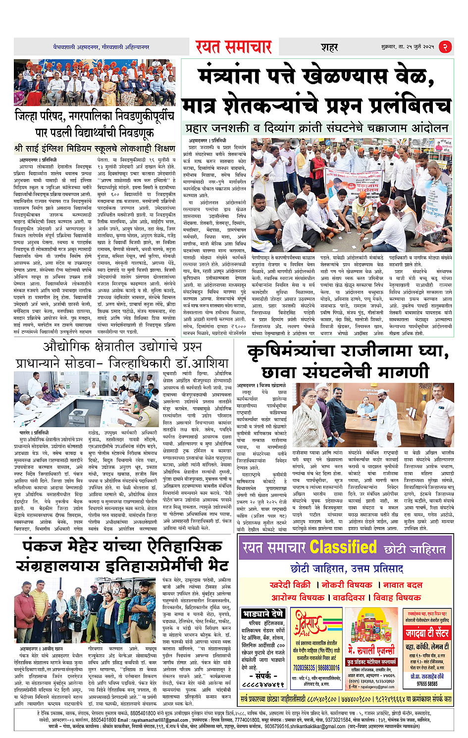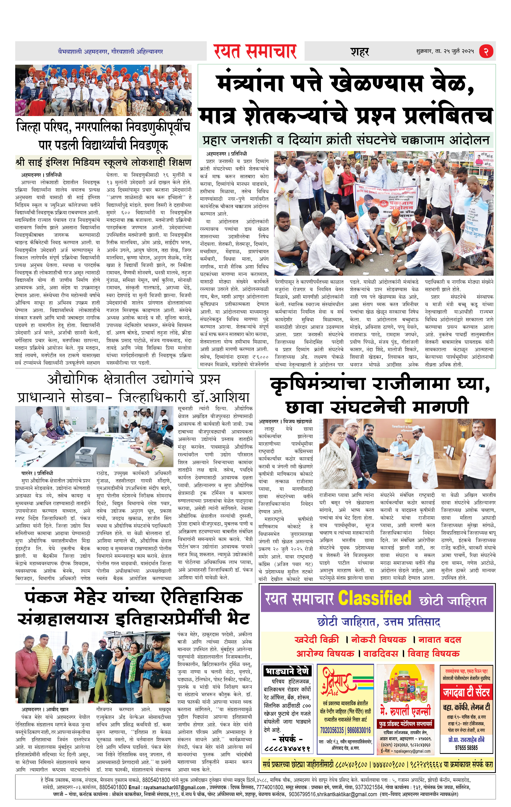 RSE: आजचा रयत समाचार वाचा 25 JULY2025 Page: 2 July 25, 2025 << First << 1 2 3 4 >> Last >> Page 1Page 2Page 3Page 4 × RSE: आजचा रयत समाचार वाचा 25 JULY2025 1_MAIN_PAGE2_CITY_PAGE3_DISTRICT_PAGE4_MAHARASHTRA_PAGE Full PDF << First << 2 >> Last >> 1_MAIN_PAGE2_CITY_PAGE3_DISTRICT_PAGE4_MAHARASHTRA_PAGE