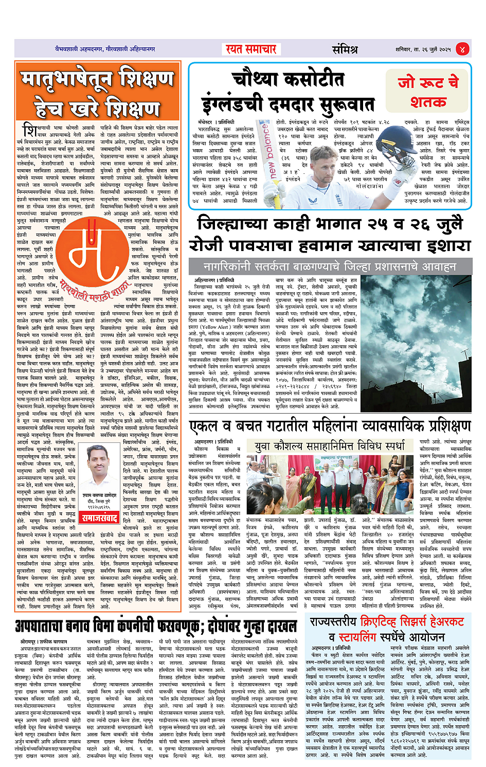 RSE: आजचा रयत समाचार वाचा 26 JULY2025 Page: 4 July 26, 2025 << First << 1 2 3 4 >> Last >> Page 1Page 2Page 3Page 4 × RSE: आजचा रयत समाचार वाचा 26 JULY2025 1_MAIN PAGE2_CITY PAGE3_DISTRICT PAGE4_MAHARSHTRA PAGE Full PDF << First << 4 >> Last >> 1_MAIN PAGE2_CITY PAGE3_DISTRICT PAGE4_MAHARSHTRA PAGE