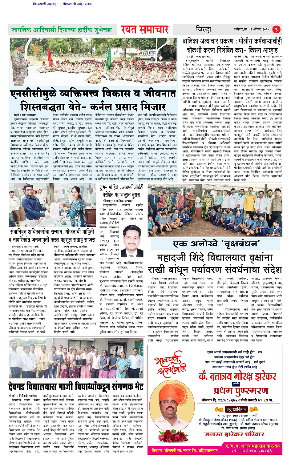 RSE: आजचा रयत समाचार वाचा 09August2025 क्रांतीदिन | जागतिक आदिवासी दिन Page: 3 August 09, 2025 << First << 1 2 3 4 >> Last >> Page 1Page 2Page 3Page 4 × RSE: आजचा रयत समाचार वाचा 09August2025 क्रांतीदिन | जागतिक आदिवासी दिन 1_MAIN_PAGE2_CITY_PAGE3_DISTRICT_PAGE4_MAHARASHTRA_PAGE Full PDF << First << 3 >> Last >> 1_MAIN_PAGE2_CITY_PAGE3_DISTRICT_PAGE4_MAHARASHTRA_PAGE
