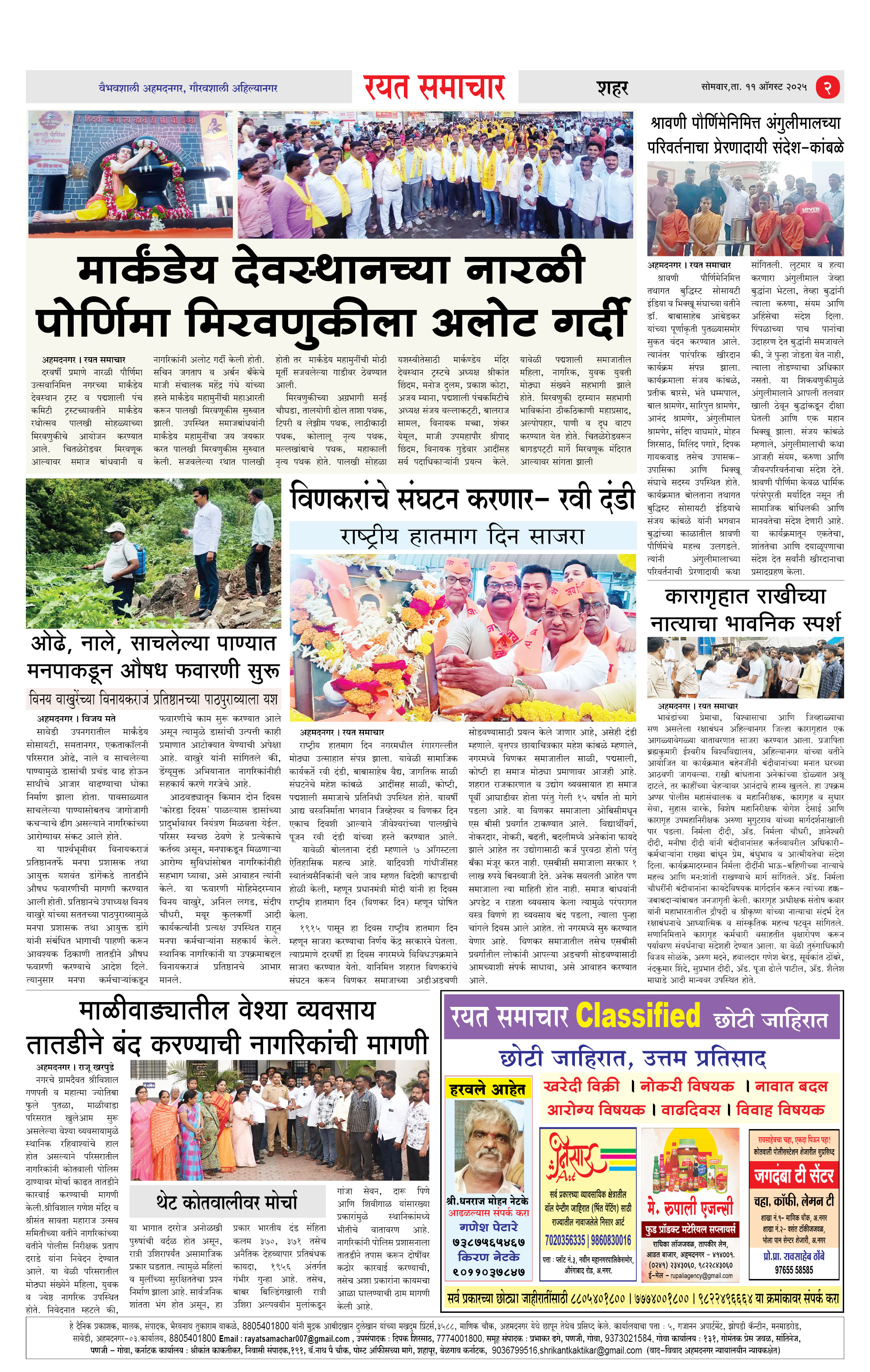 RSE: आजचा रयत समाचार वाचा 11August2025 Page: 2 August 11, 2025 << First << 1 2 3 4 >> Last >> Page 1Page 2Page 3Page 4 × RSE: आजचा रयत समाचार वाचा 11August2025 1_MAIN_PAGE2_CITY_PAGE3_DISTRICT_PAGE4 << First << 2 >> Last >> 1_MAIN_PAGE2_CITY_PAGE3_DISTRICT_PAGE4