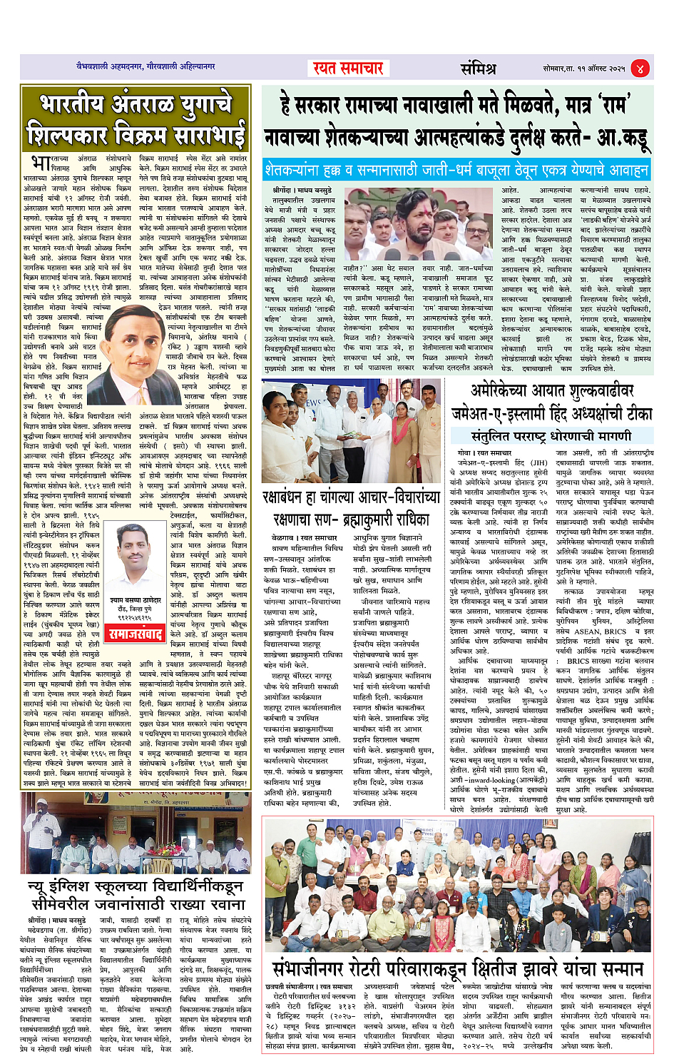RSE: आजचा रयत समाचार वाचा 11August2025 Page: 4 August 11, 2025 << First << 1 2 3 4 >> Last >> Page 1Page 2Page 3Page 4 × RSE: आजचा रयत समाचार वाचा 11August2025 1_MAIN_PAGE2_CITY_PAGE3_DISTRICT_PAGE4 << First << 4 >> Last >> 1_MAIN_PAGE2_CITY_PAGE3_DISTRICT_PAGE4