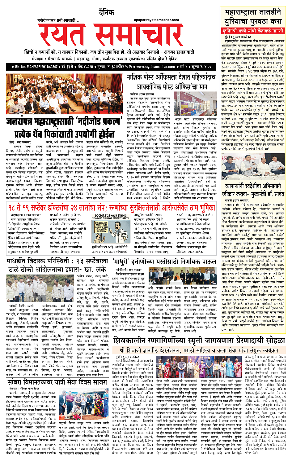 RSE: आजचा रयत समाचार वाचा 18Sep2025 मनोरंजनासह प्रबोधनासाठी... September 18, 2025 << First << 1 2 3 4 >> Last >> Page 1Page 2Page 3Page 4 × RSE: आजचा रयत समाचार वाचा 18Sep2025 मनोरंजनासह प्रबोधनासाठी... 1_मुख्य पान2_ शहर पान3_जिल्हा पान4_महाराष्ट्र पान Full PDF << First << 1 >> Last >> 1_मुख्य पान2_ शहर पान3_जिल्हा पान4_महाराष्ट्र पान