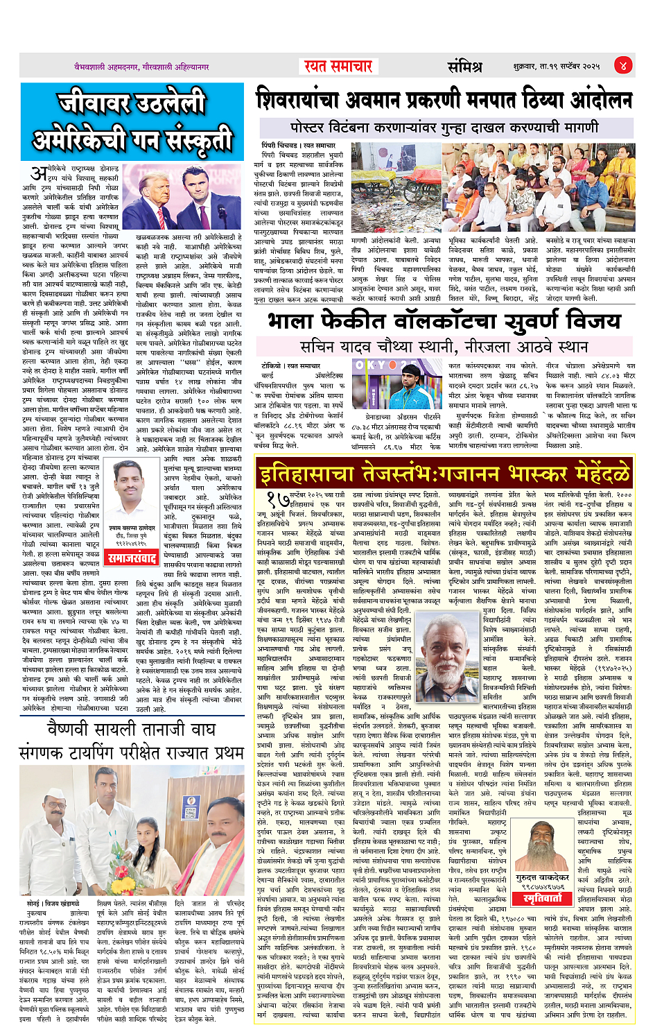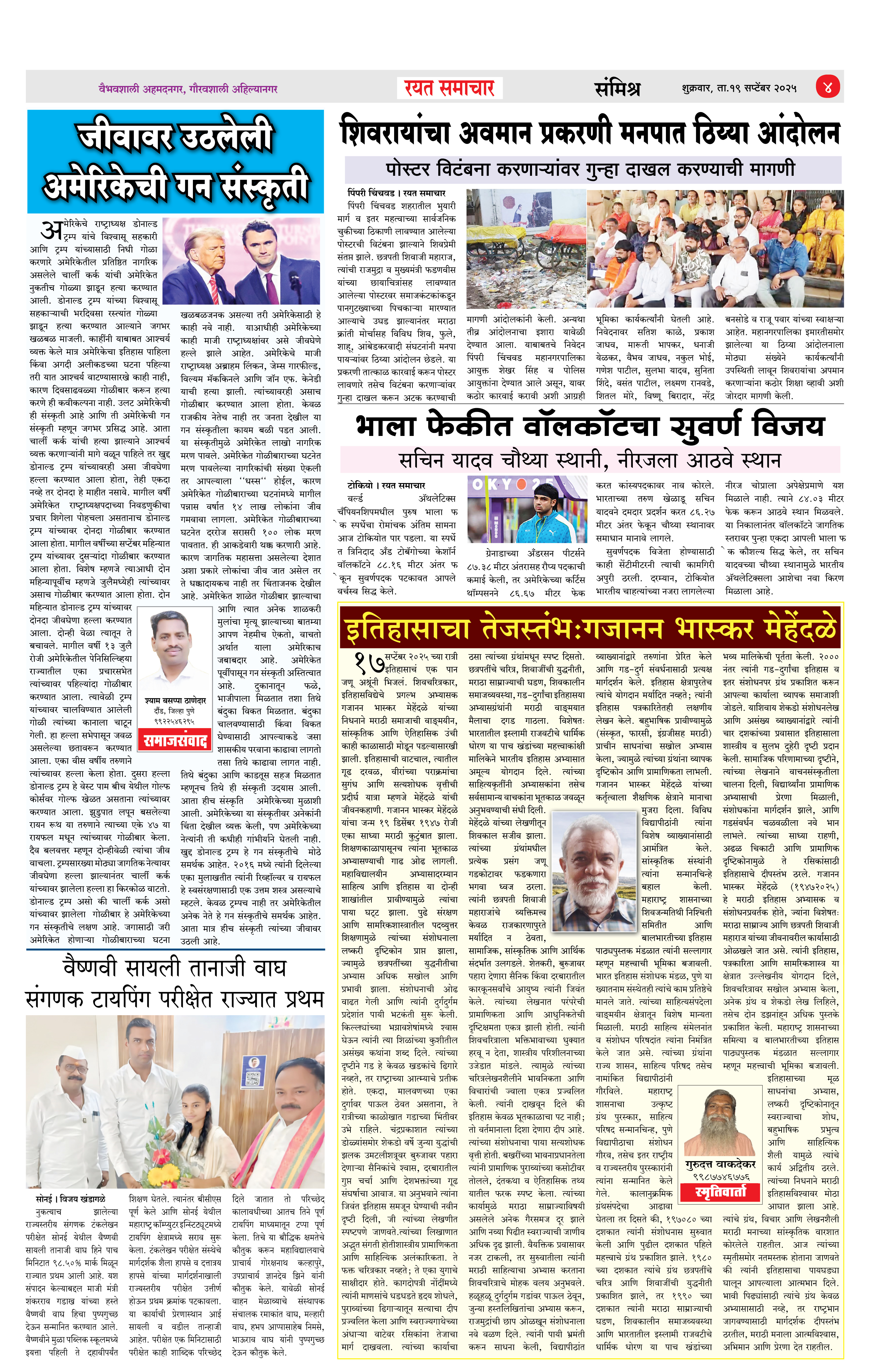 RSE: आजचा रयत समाचार वाचा 19Sep2025 मनोरंजनासह प्रबोधनासाठी... Page: 4 September 19, 2025 << First << 1 2 3 4 >> Last >> Page 1Page 2Page 3Page 4 × RSE: आजचा रयत समाचार वाचा 19Sep2025 मनोरंजनासह प्रबोधनासाठी... 1_मुख्य पान2_ शहर पान3_जिल्हा पान4_महाराष्ट्र पान << First << 4 >> Last >> 1_मुख्य पान2_ शहर पान3_जिल्हा पान4_महाराष्ट्र पान