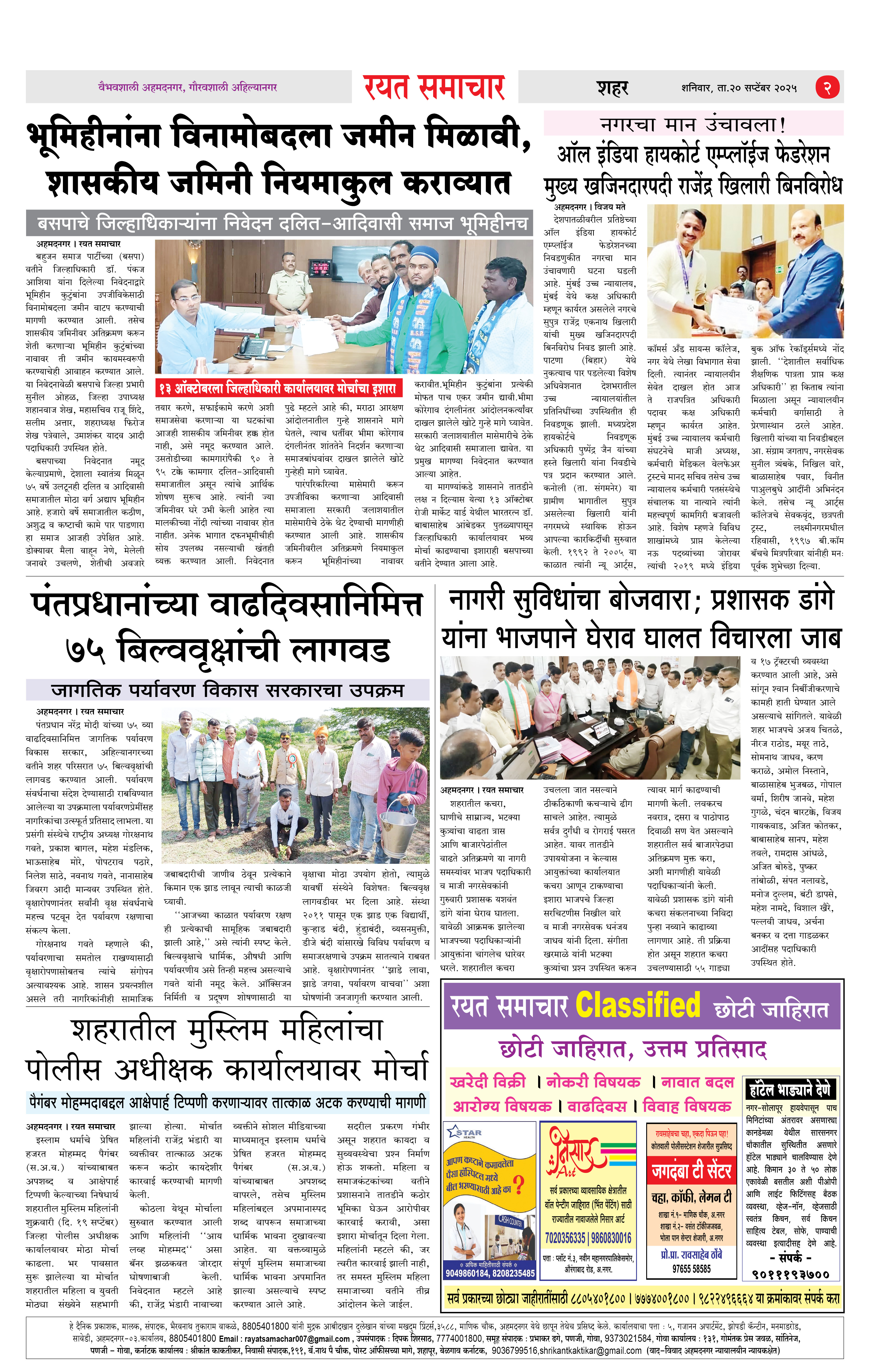 RSE: आजचा रयत समाचार वाचा 20Sep2025 मनोरंजनासह प्रबोधनासाठी... Page: 2 September 20, 2025 << First << 1 2 3 4 >> Last >> Page 1Page 2Page 3Page 4 × RSE: आजचा रयत समाचार वाचा 20Sep2025 मनोरंजनासह प्रबोधनासाठी... 1_मुख्य पान2_ शहर पान3_जिल्हा पान4_महाराष्ट्र पान Full PDF << First << 2 >> Last >> 1_मुख्य पान2_ शहर पान3_जिल्हा पान4_महाराष्ट्र पान