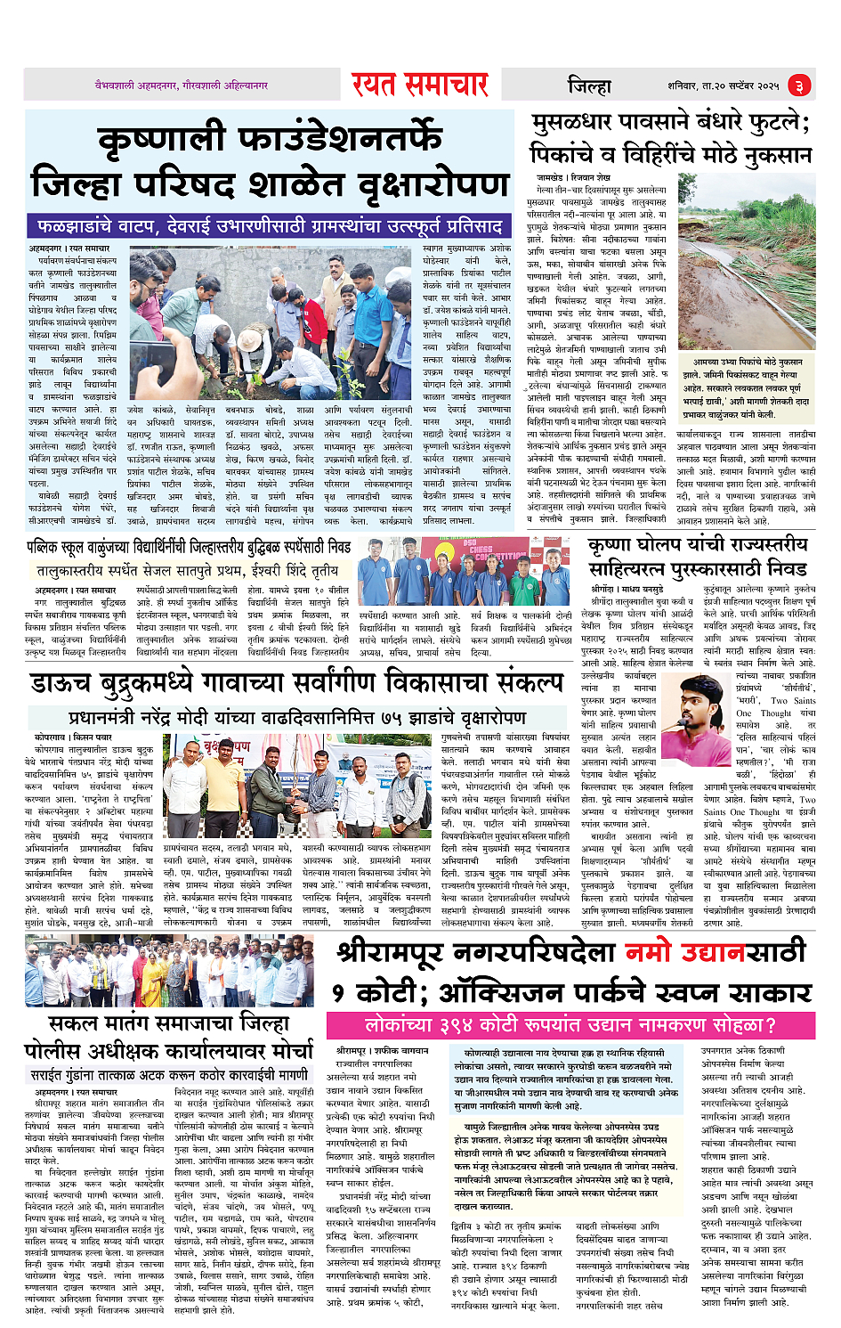 RSE: आजचा रयत समाचार वाचा 20Sep2025 मनोरंजनासह प्रबोधनासाठी... Page: 3 September 20, 2025 << First << 1 2 3 4 >> Last >> Page 1Page 2Page 3Page 4 × RSE: आजचा रयत समाचार वाचा 20Sep2025 मनोरंजनासह प्रबोधनासाठी... 1_मुख्य पान2_ शहर पान3_जिल्हा पान4_महाराष्ट्र पान Full PDF << First << 3 >> Last >> 1_मुख्य पान2_ शहर पान3_जिल्हा पान4_महाराष्ट्र पान