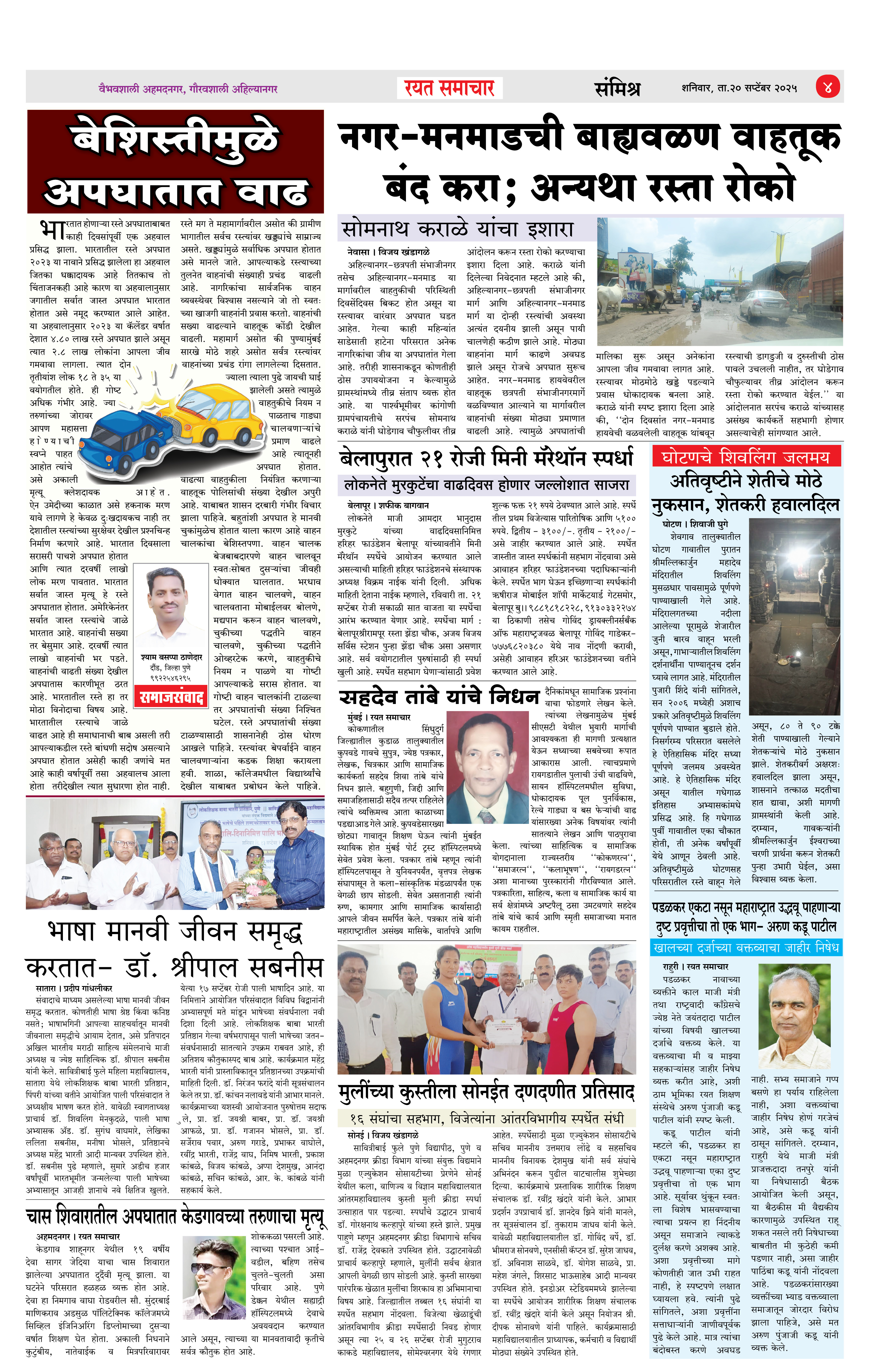 RSE: आजचा रयत समाचार वाचा 20Sep2025 मनोरंजनासह प्रबोधनासाठी... Page: 4 September 20, 2025 << First << 1 2 3 4 >> Last >> Page 1Page 2Page 3Page 4 × RSE: आजचा रयत समाचार वाचा 20Sep2025 मनोरंजनासह प्रबोधनासाठी... 1_मुख्य पान2_ शहर पान3_जिल्हा पान4_महाराष्ट्र पान Full PDF << First << 4 >> Last >> 1_मुख्य पान2_ शहर पान3_जिल्हा पान4_महाराष्ट्र पान