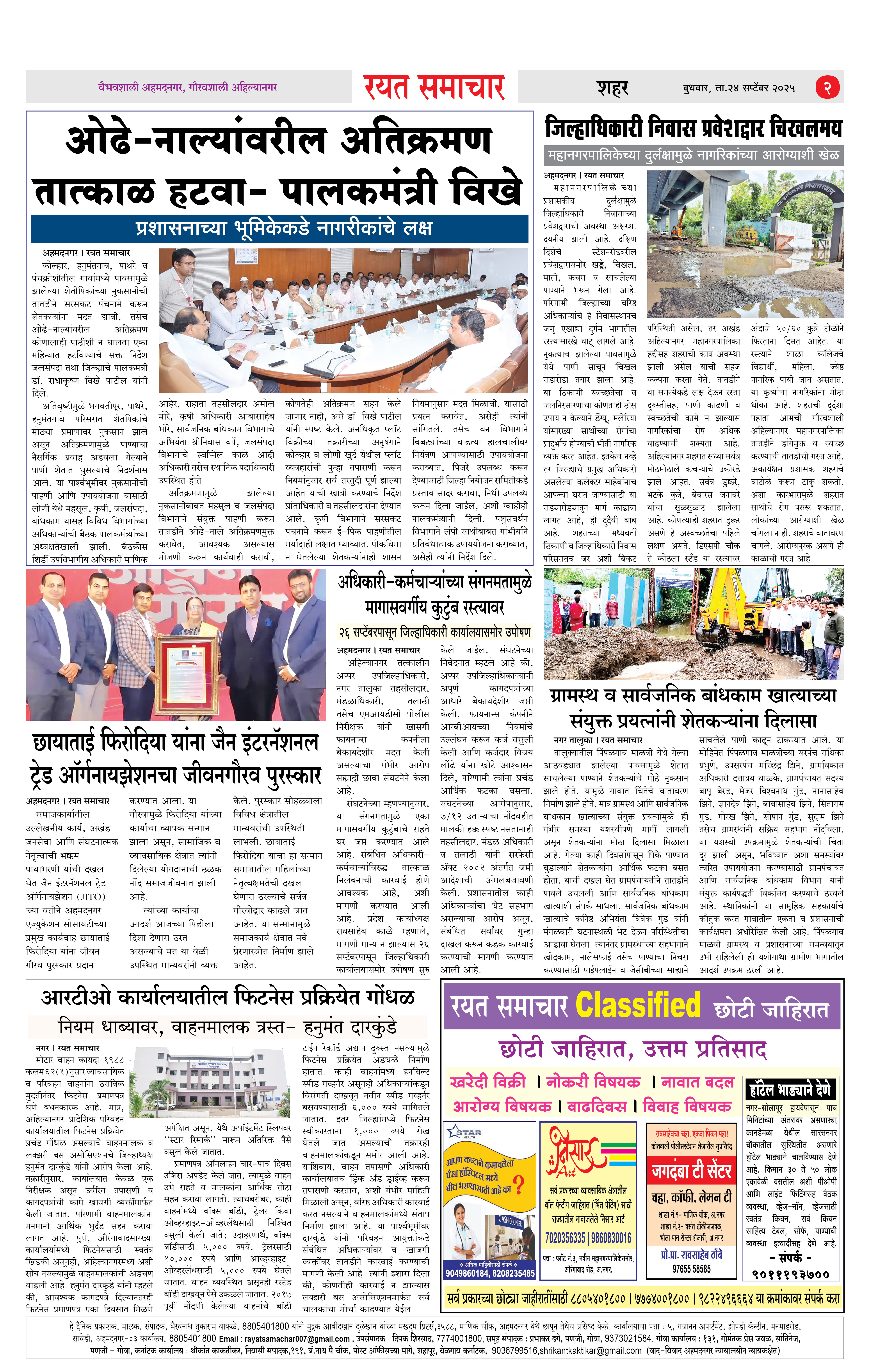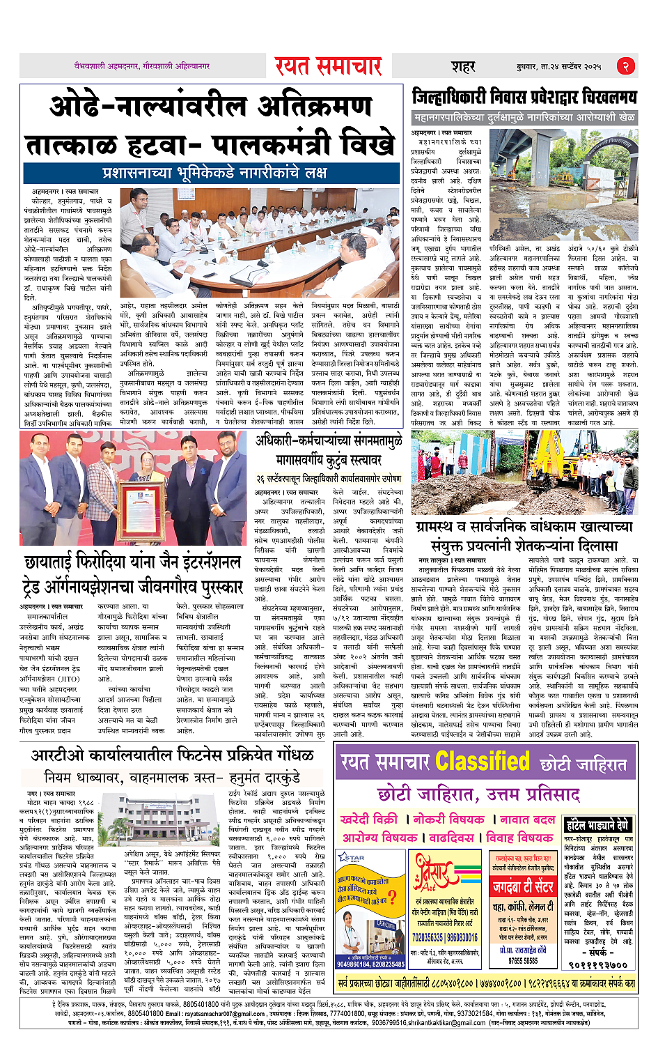RSE: आजचा रयत समाचार वाचा 24Sep2025 Page: 2 September 24, 2025 << First << 1 2 3 4 >> Last >> Page 1Page 2Page 3Page 4 × RSE: आजचा रयत समाचार वाचा 24Sep2025 1_मुख्य पान2_ शहर पान3_जिल्हा पान4_महाराष्ट्र पान Full PDF << First << 2 >> Last >> 1_मुख्य पान2_ शहर पान3_जिल्हा पान4_महाराष्ट्र पान