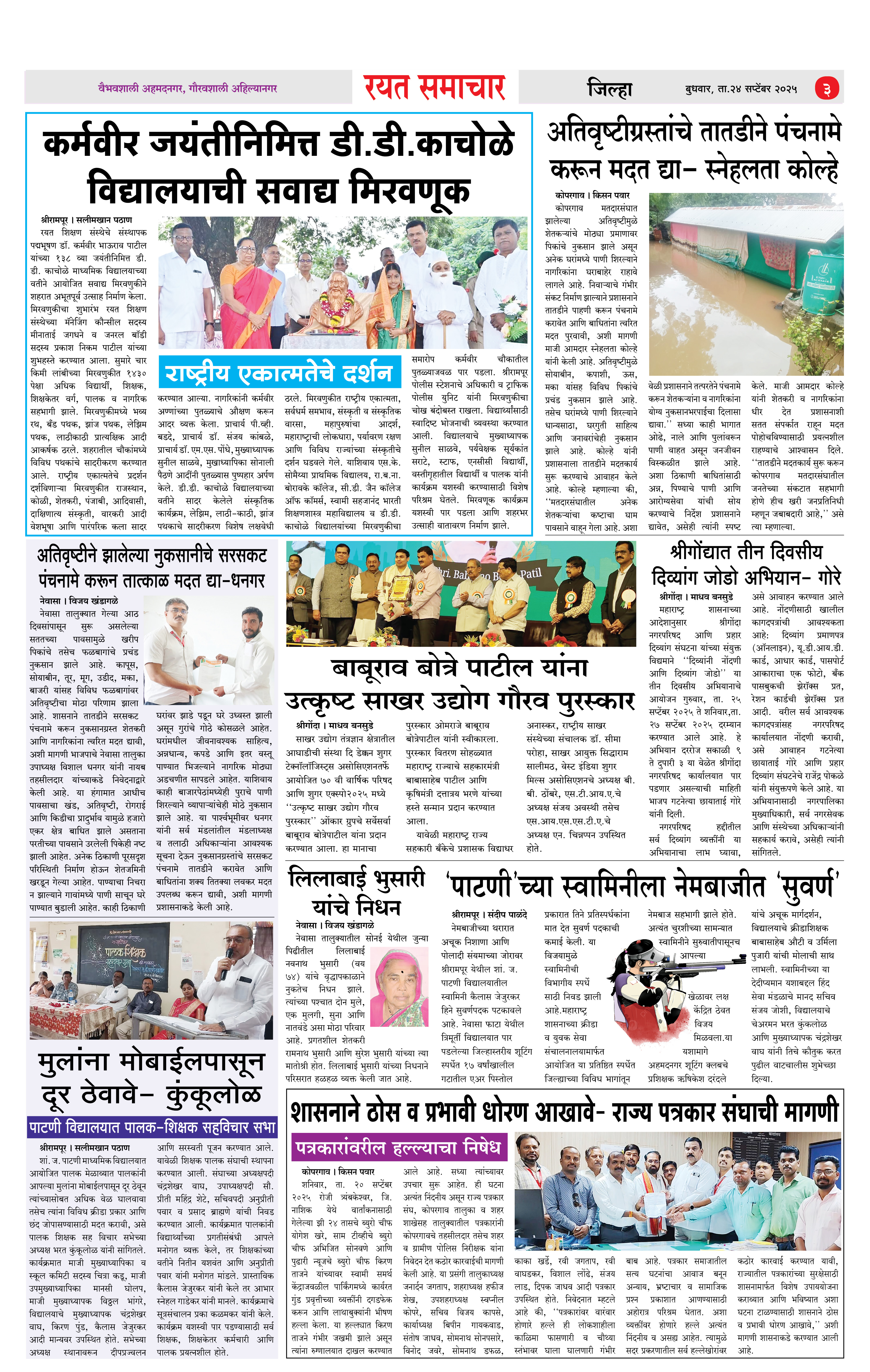 RSE: आजचा रयत समाचार वाचा 24Sep2025 Page: 3 September 24, 2025 << First << 1 2 3 4 >> Last >> Page 1Page 2Page 3Page 4 × RSE: आजचा रयत समाचार वाचा 24Sep2025 1_मुख्य पान2_ शहर पान3_जिल्हा पान4_महाराष्ट्र पान Full PDF << First << 3 >> Last >> 1_मुख्य पान2_ शहर पान3_जिल्हा पान4_महाराष्ट्र पान