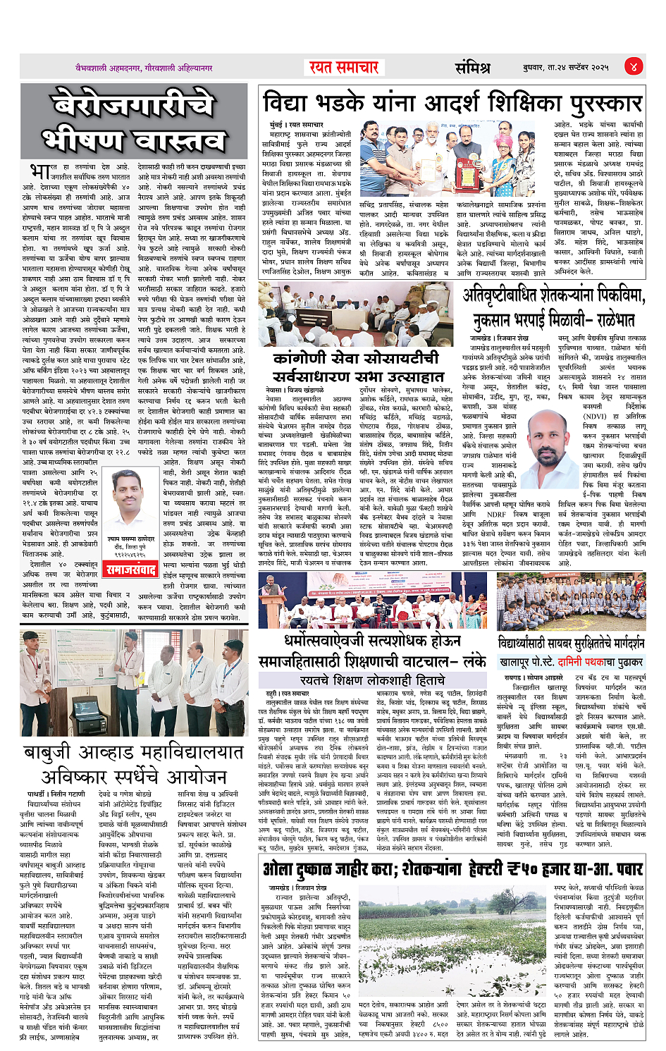 RSE: आजचा रयत समाचार वाचा 24Sep2025 Page: 4 September 24, 2025 << First << 1 2 3 4 >> Last >> Page 1Page 2Page 3Page 4 × RSE: आजचा रयत समाचार वाचा 24Sep2025 1_मुख्य पान2_ शहर पान3_जिल्हा पान4_महाराष्ट्र पान Full PDF << First << 4 >> Last >> 1_मुख्य पान2_ शहर पान3_जिल्हा पान4_महाराष्ट्र पान