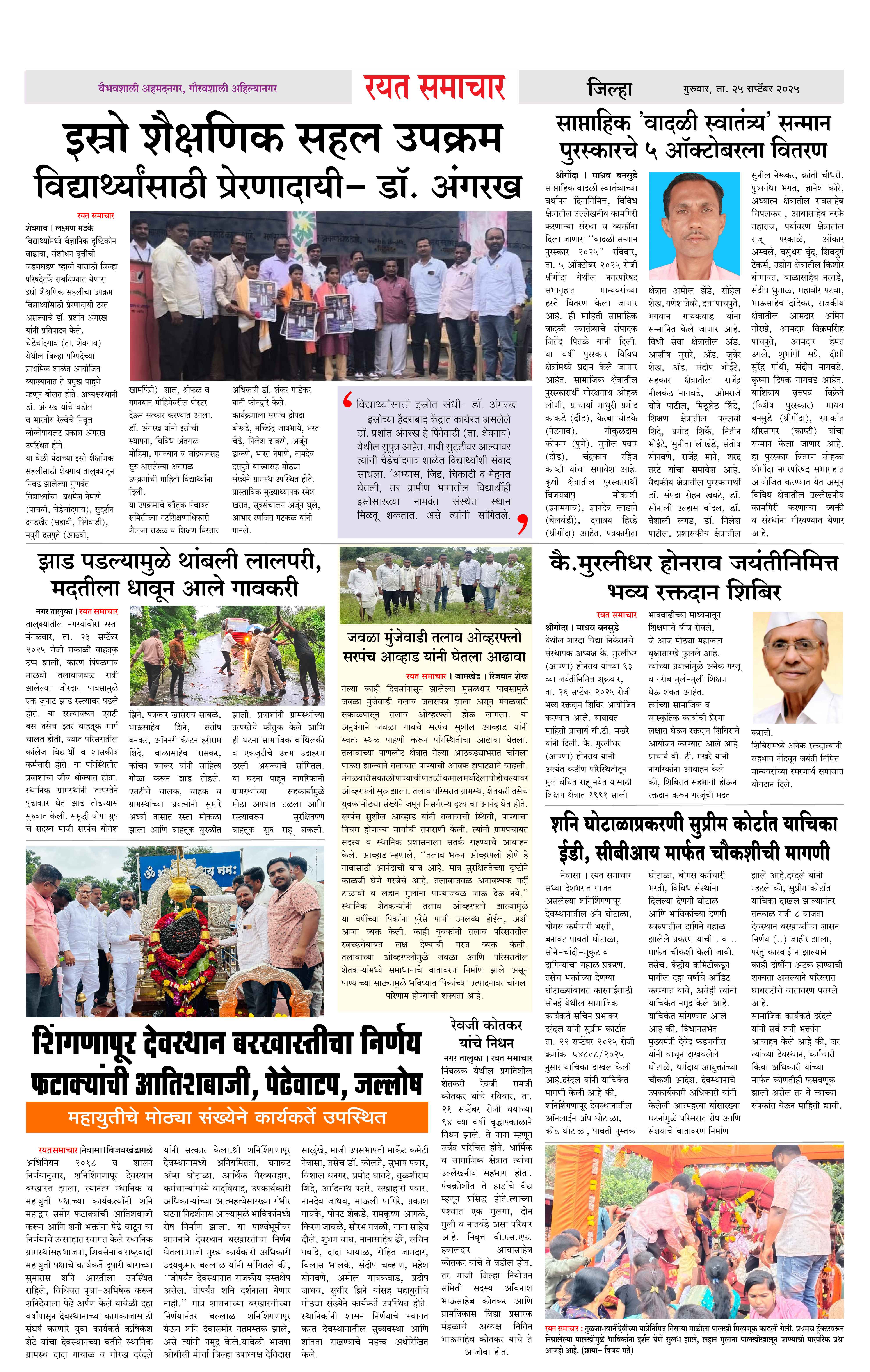 RSE: आजचा रयत समाचार वाचा 25Sep2025 Page: 3 September 25, 2025 << First << 1 2 3 4 >> Last >> Page 1Page 2Page 3Page 4 × RSE: आजचा रयत समाचार वाचा 25Sep2025 1_MAIN PAGE2_CITY PAGE3_DISTRICT PAGE4_MAHARSHTRA PAGE Full PDF << First << 3 >> Last >> 1_MAIN PAGE2_CITY PAGE3_DISTRICT PAGE4_MAHARSHTRA PAGE