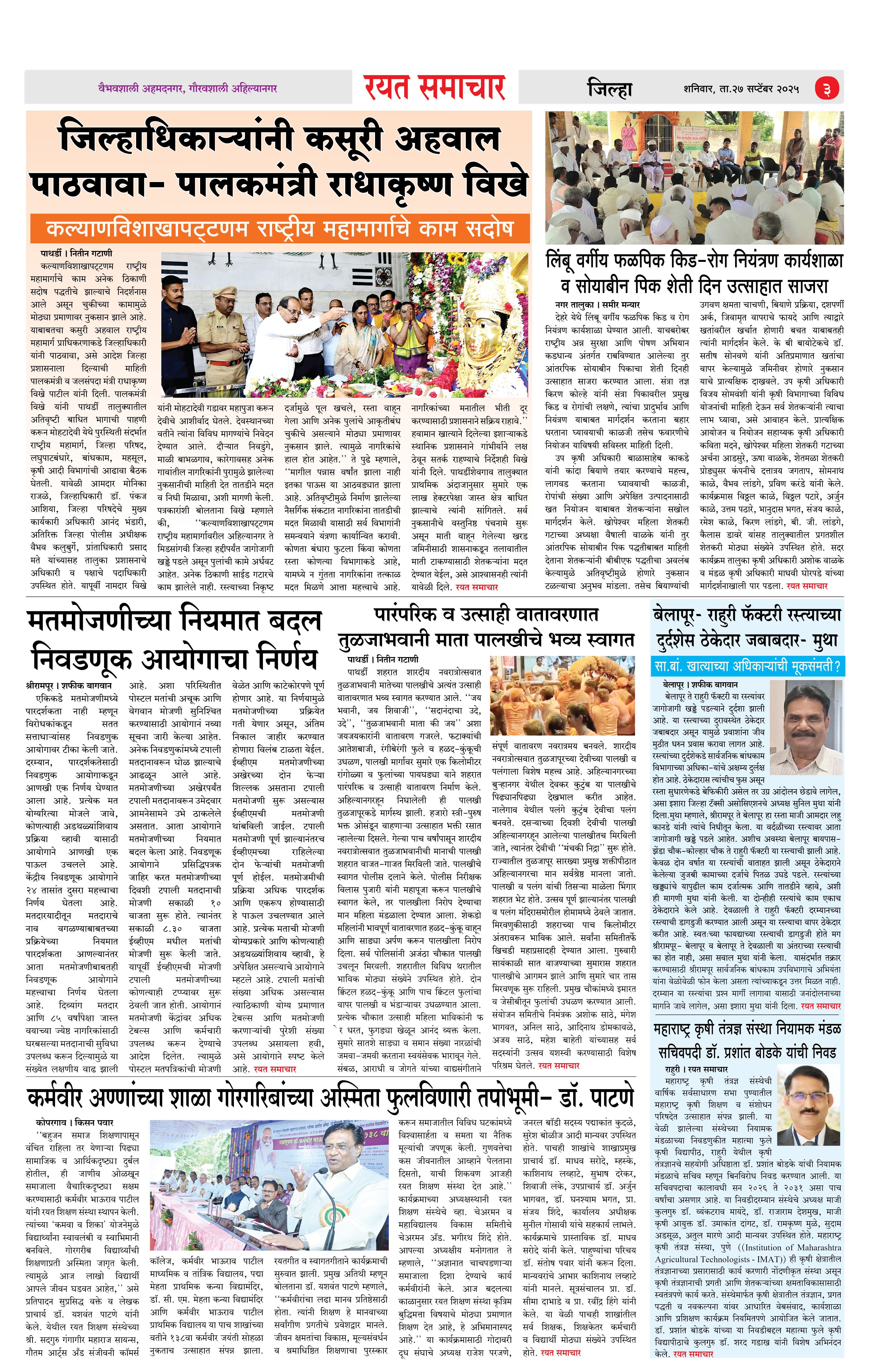 RSE: आजचा रयत समाचार वाचा 27Sep2025 मनोरंजनासह प्रबोधनासाठी... Page: 3 September 27, 2025 << First << 1 2 3 4 >> Last >> Page 1Page 2Page 3Page 4 × RSE: आजचा रयत समाचार वाचा 27Sep2025 मनोरंजनासह प्रबोधनासाठी... 1_मुख्य पान2_ शहर पान3_जिल्हा पान4_महाराष्ट्र पान Full PDF << First << 3 >> Last >> 1_मुख्य पान2_ शहर पान3_जिल्हा पान4_महाराष्ट्र पान