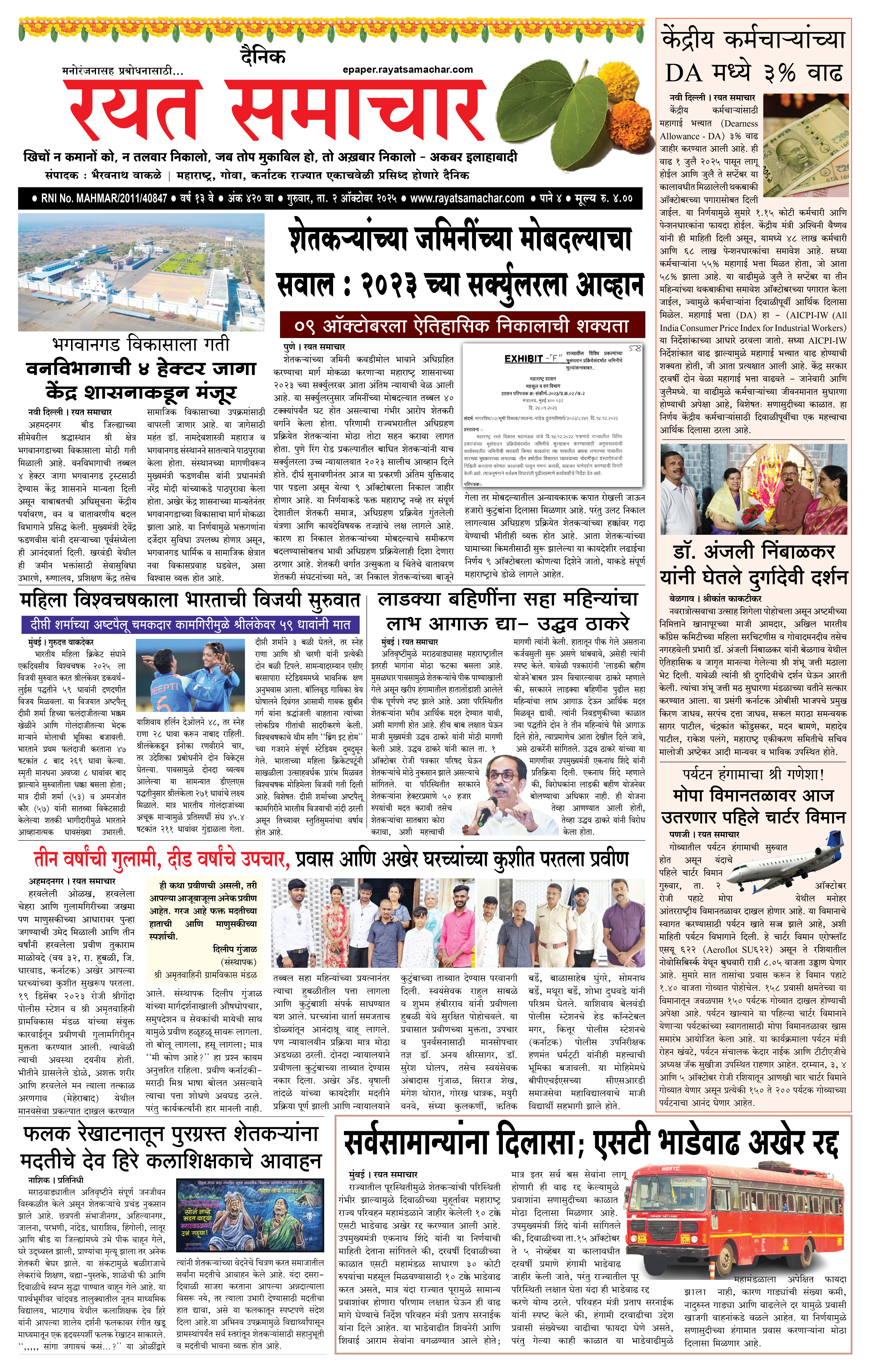 RSE: आजचा रयत समाचार वाचा 02Oct2025 मनोरंजनासह प्रबोधनासाठी...