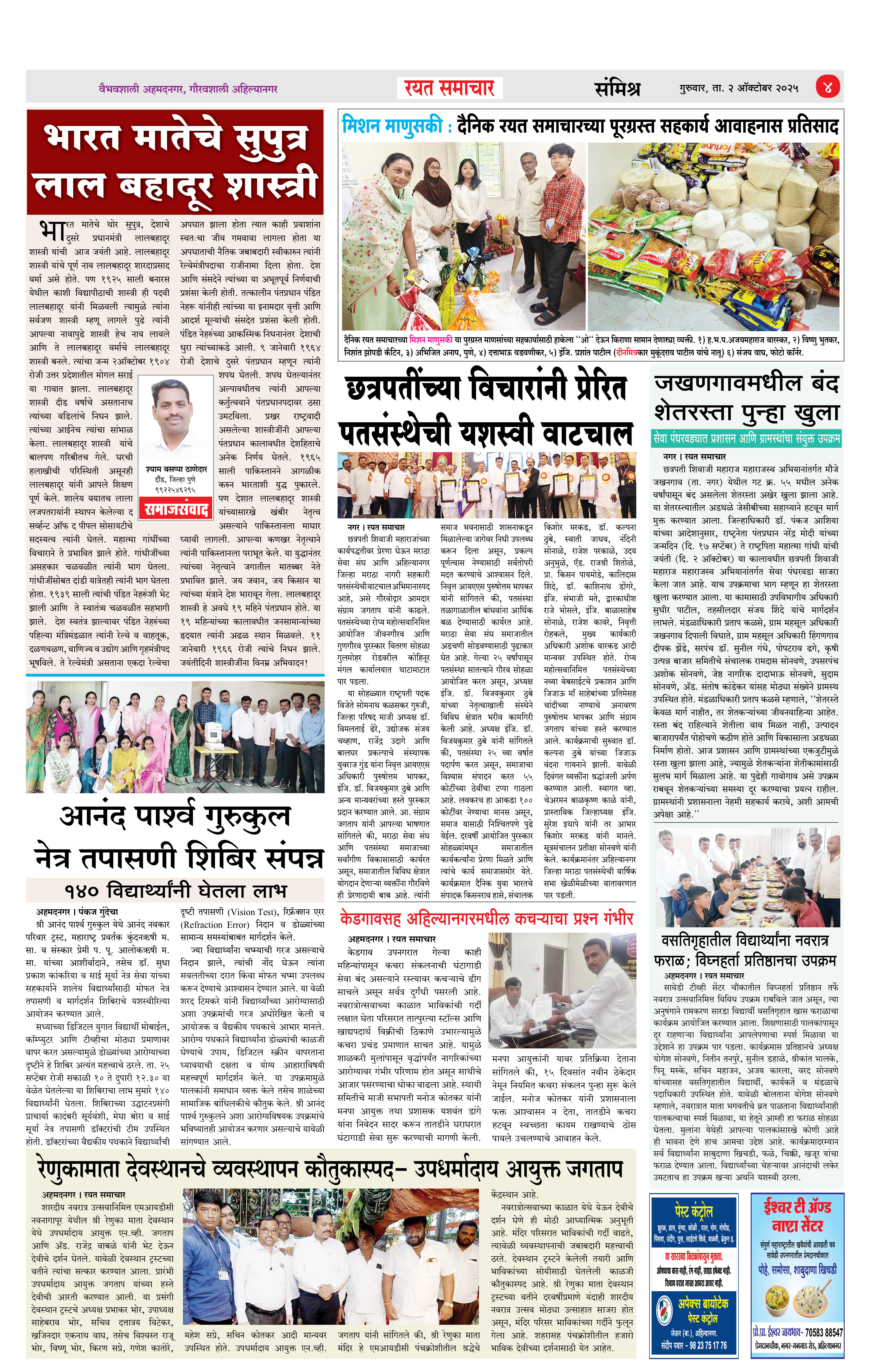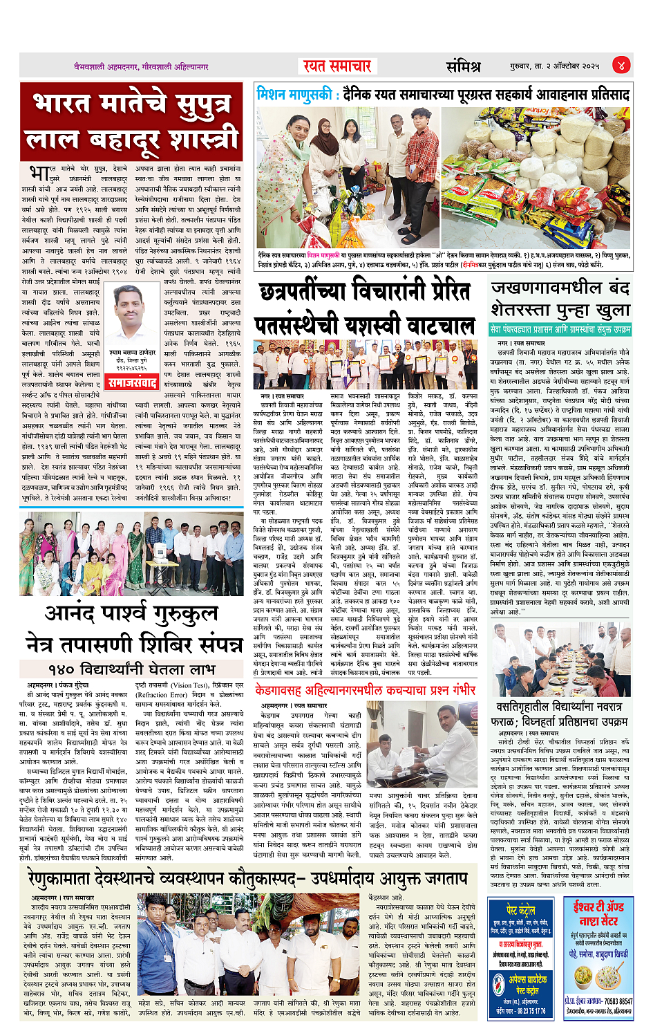 RSE: आजचा रयत समाचार वाचा 02Oct2025 मनोरंजनासह प्रबोधनासाठी... Page: 4 October 02, 2025 << First << 1 2 3 4 >> Last >> Page 1Page 2Page 3Page 4 × RSE: आजचा रयत समाचार वाचा 02Oct2025 मनोरंजनासह प्रबोधनासाठी... 1_MAIN_PAGE2_CITY_PAGE3_DISTRICT_PAGE4_MAHARASHTRA_PAGE Full PDF << First << 4 >> Last >> 1_MAIN_PAGE2_CITY_PAGE3_DISTRICT_PAGE4_MAHARASHTRA_PAGE