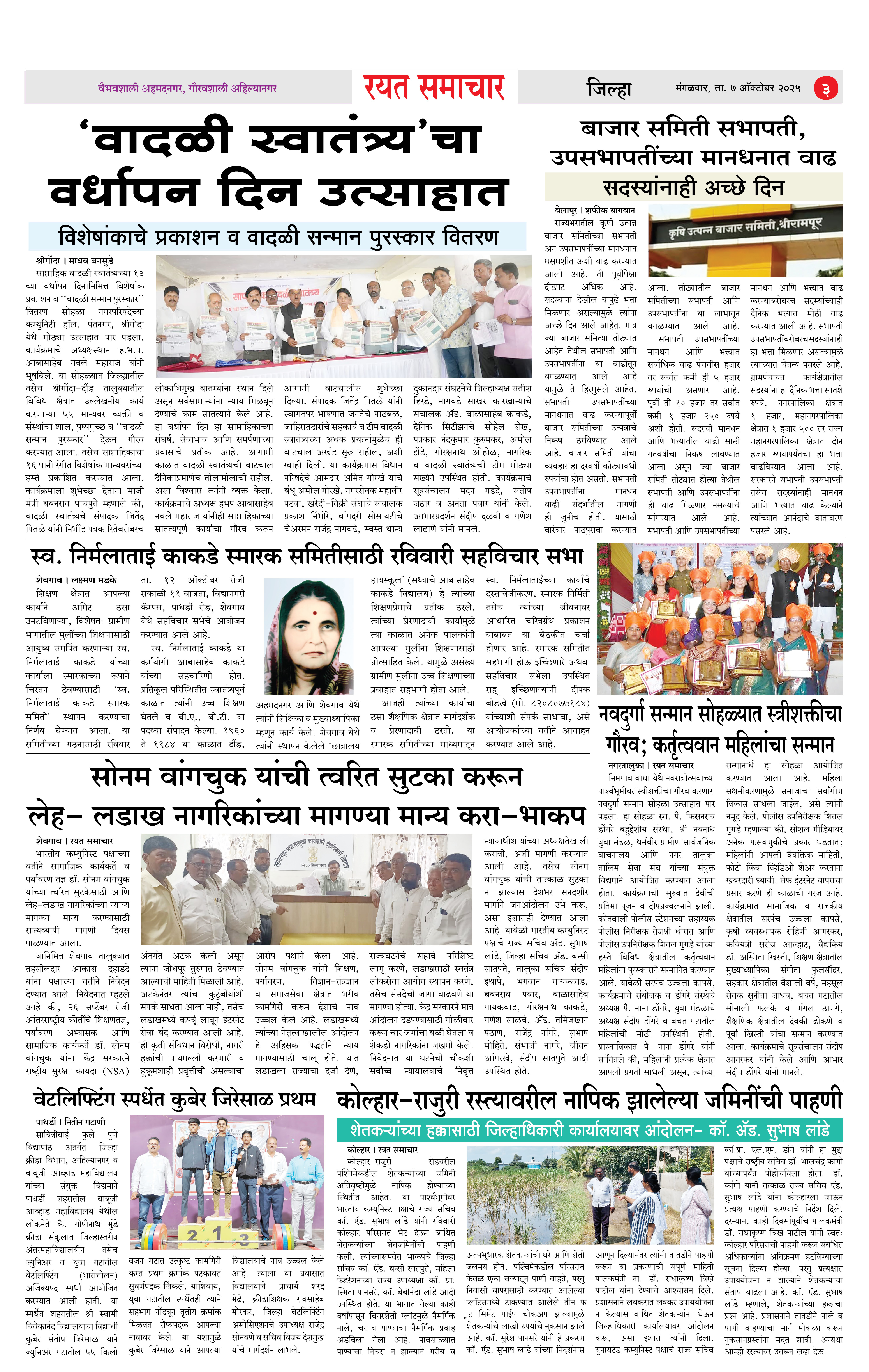 RSE: आजचा रयत समाचार वाचा 07Oct2025 मनोरंजनासह प्रबोधनासाठी... Page: 3 October 07, 2025 << First << 1 2 3 4 >> Last >> Page 1Page 2Page 3Page 4 × RSE: आजचा रयत समाचार वाचा 07Oct2025 मनोरंजनासह प्रबोधनासाठी... 1_MAIN_PAGE2_CITY_PAGE3_DISTRICT_PAGE4_MAHARASHTRA_PAGE Full PDF << First << 3 >> Last >> 1_MAIN_PAGE2_CITY_PAGE3_DISTRICT_PAGE4_MAHARASHTRA_PAGE