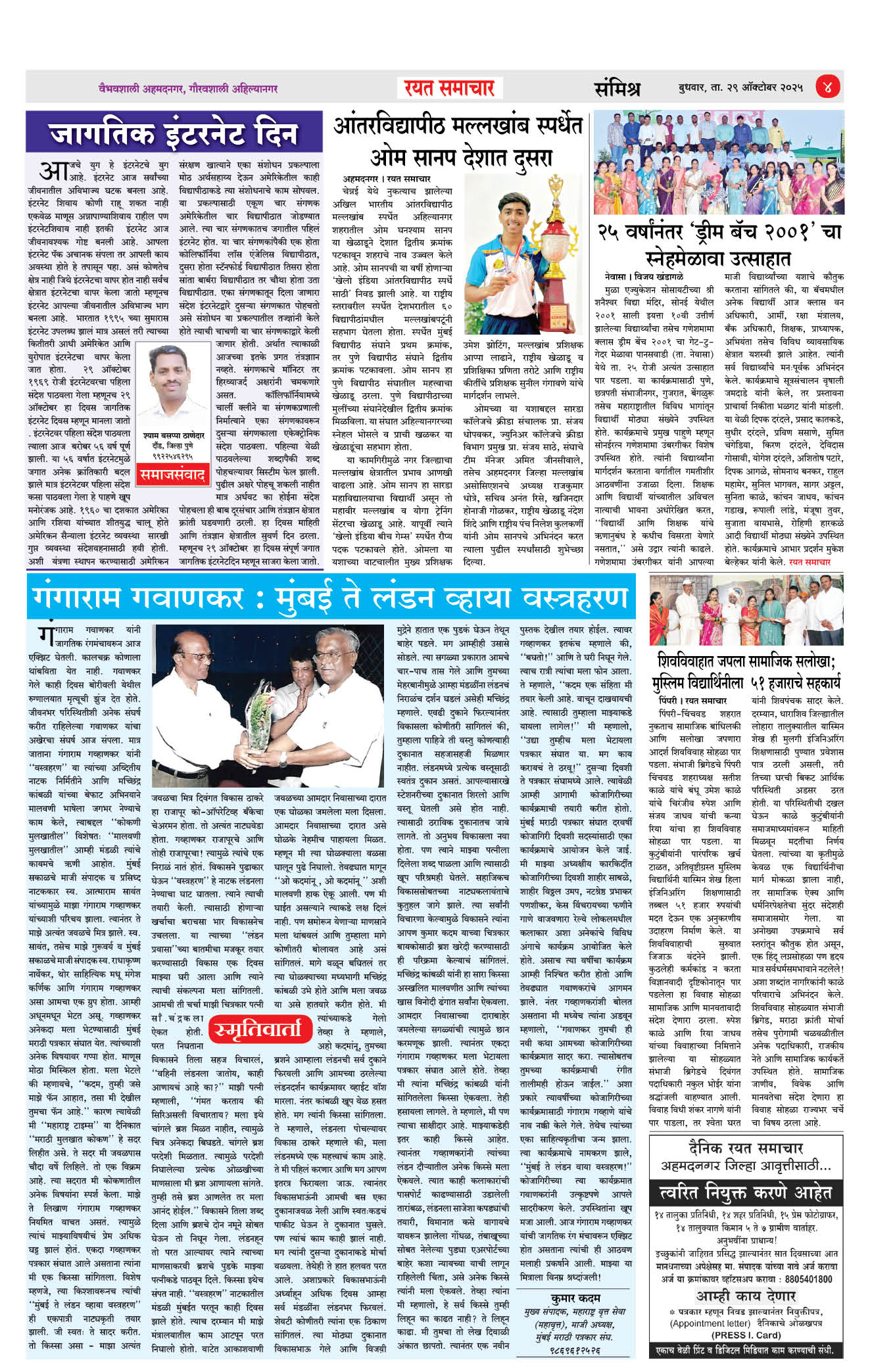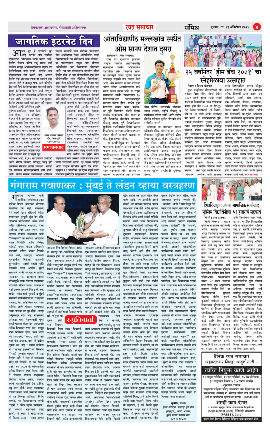 RSE: आजचा रयत समाचार वाचा 29OCT2025 मनोरंजनासह प्रबोधनासाठी... Page: 4 October 29, 2025 जागतिक इंटरनेट दिन << First << 1 2 3 4 >> Last >> Page 1Page 2Page 3Page 4 × RSE: आजचा रयत समाचार वाचा 29OCT2025 मनोरंजनासह प्रबोधनासाठी... 1_MAIN_PAGE2_CITY_PAGE3_DISTRICT_PAGE4_MAHARASHTRA_PAGE << First << 4 >> Last >> 1_MAIN_PAGE2_CITY_PAGE3_DISTRICT_PAGE4_MAHARASHTRA_PAGE