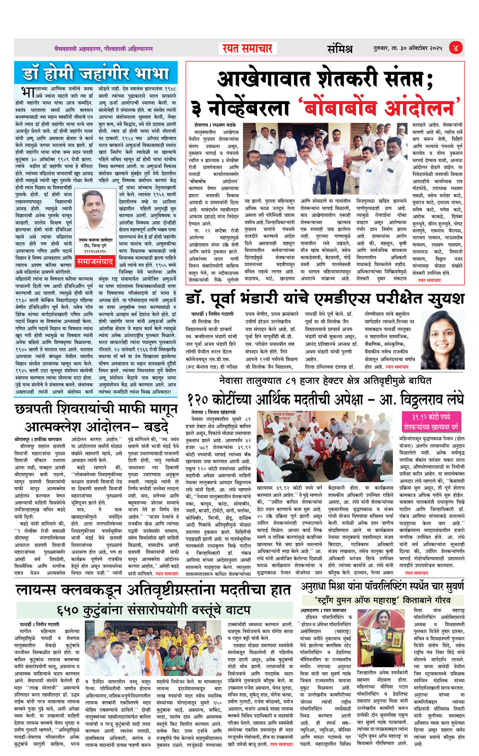 RSE: आजचा रयत समाचार वाचा 30OCT2025 मनोरंजनासह प्रबोधनासाठी... Page: 4