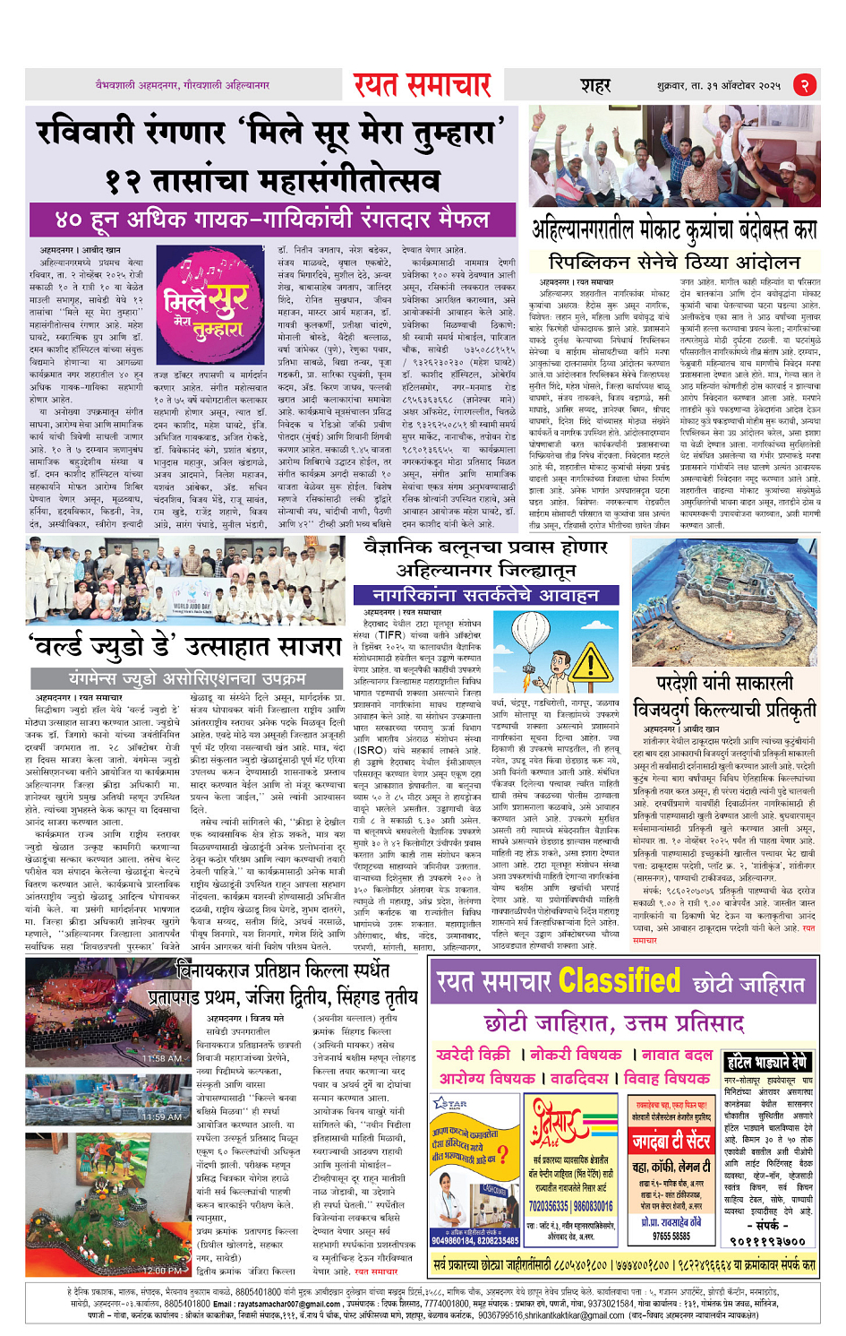 RSE: आजचा रयत समाचार वाचा 31OCT2025 मनोरंजनासह प्रबोधनासाठी... Page: 2 October 31, 2025 जागतिक बचत दिन | जागतिक शहर दिवस |राष्ट्रीय एकता दिवस << First << 1 2 3 4 >> Last >> Page 1Page 2Page 3Page 4 × RSE: आजचा रयत समाचार वाचा 31OCT2025 मनोरंजनासह प्रबोधनासाठी... 1_MAIN_PAGE2_CITY_PAGE3_DISTRICT_PAGE4_MAHARASHTRA_PAGE << First << 2 >> Last >> 1_MAIN_PAGE2_CITY_PAGE3_DISTRICT_PAGE4_MAHARASHTRA_PAGE