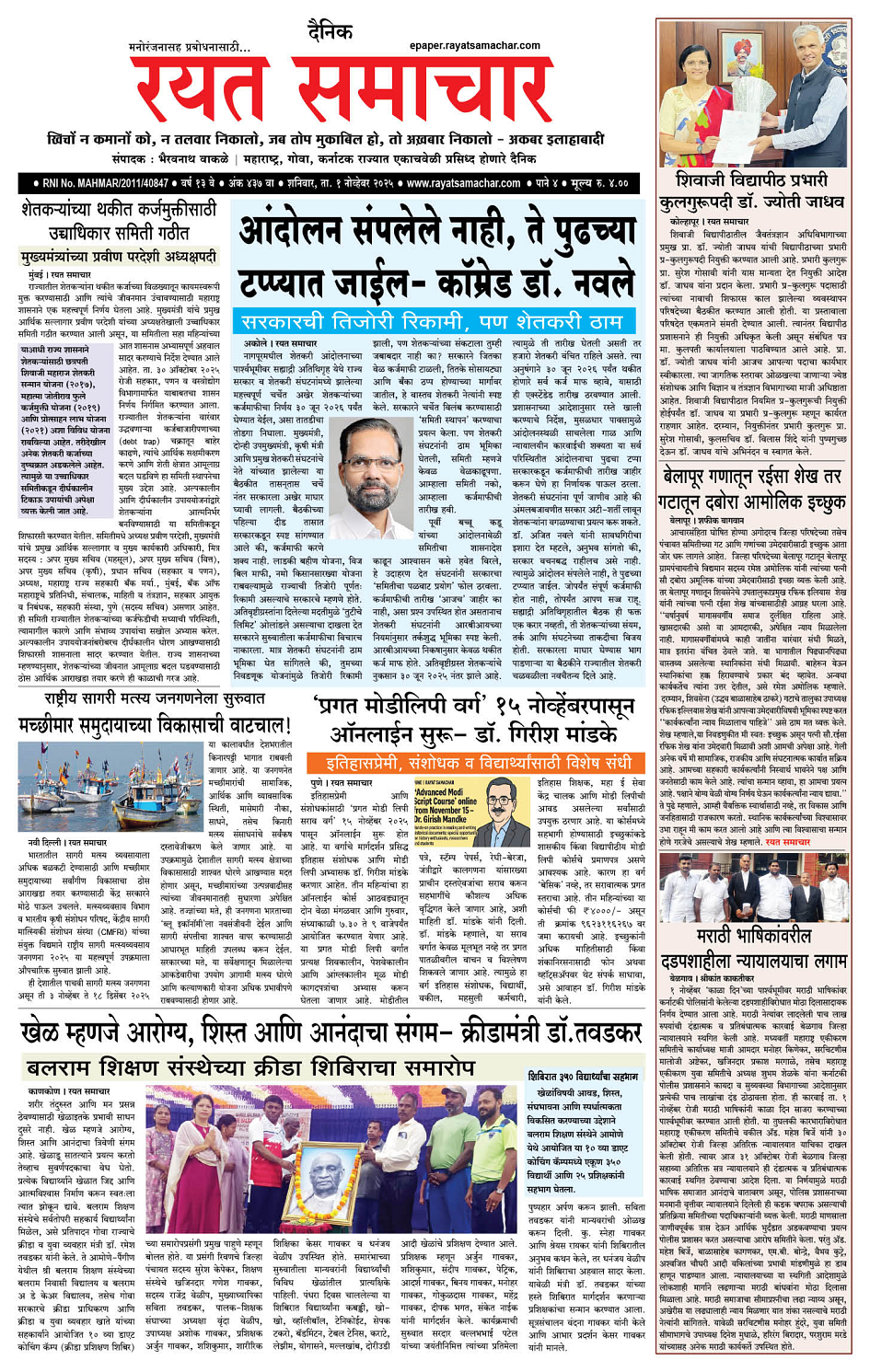 RSE: आजचा रयत समाचार वाचा 01nov2025 मनोरंजनासह प्रबोधनासाठी... November 01, 2025 दिनविशेष - १९८४: शीखविरोधी दंगली - प्रधानमंत्री इंदिरा गांधी यांची ३१ ऑक्टोबर १९८४ रोजी त्यांच्या दोन अंगरक्षकांनी हत्या केल्यानंतर शीखविरोधी दंगली उसळल्या होत्या. << First << 1 2 3 4 >> Last >> Page 1Page 2Page 3Page 4 × RSE: आजचा रयत समाचार वाचा 01nov2025 मनोरंजनासह प्रबोधनासाठी... 1_MAIN_PAGE2_CITY_PAGE3_DISTRICT_PAGE4_MAHARASHTRA_PAGE << First << 1 >> Last >> 1_MAIN_PAGE2_CITY_PAGE3_DISTRICT_PAGE4_MAHARASHTRA_PAGE