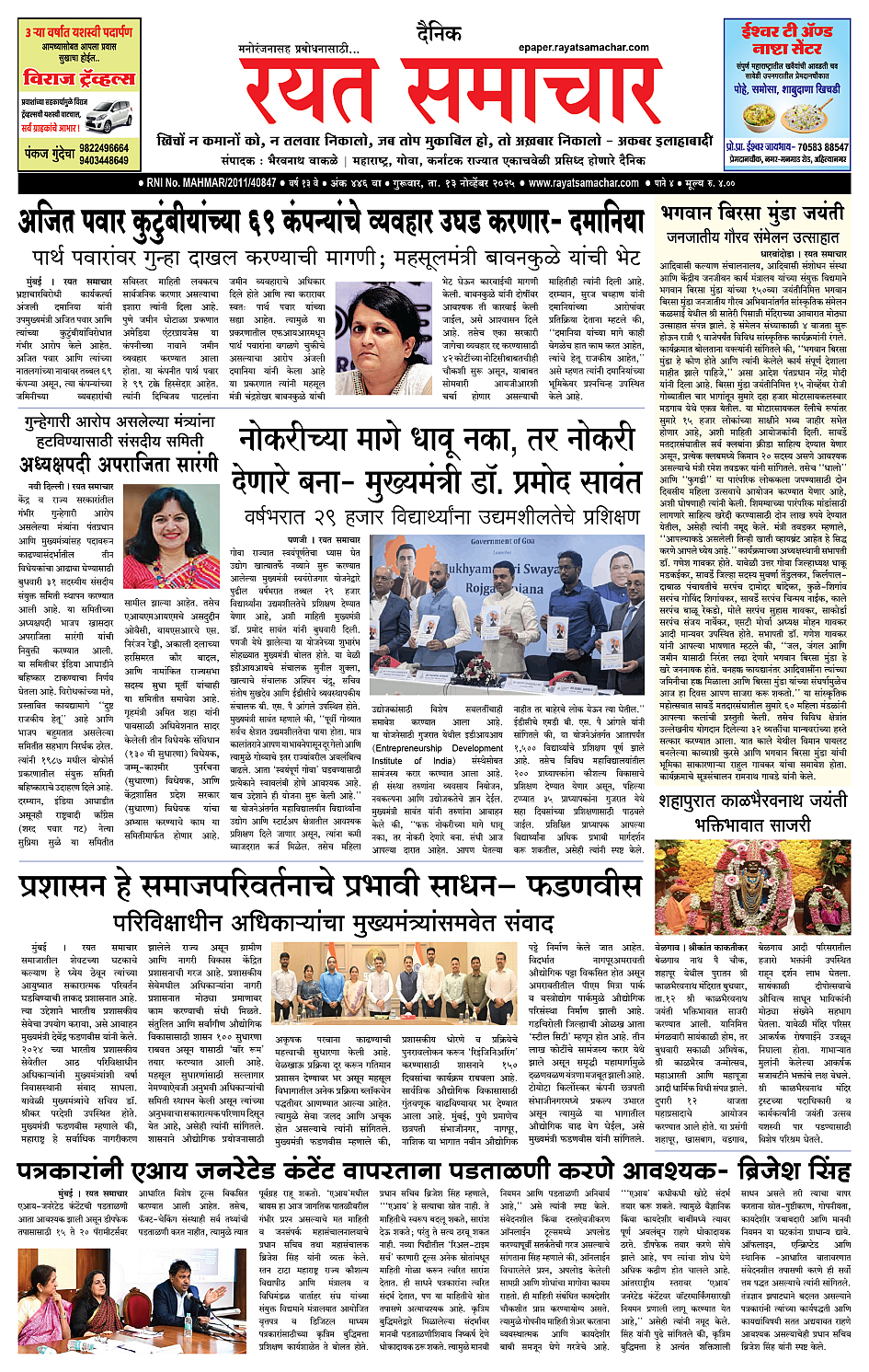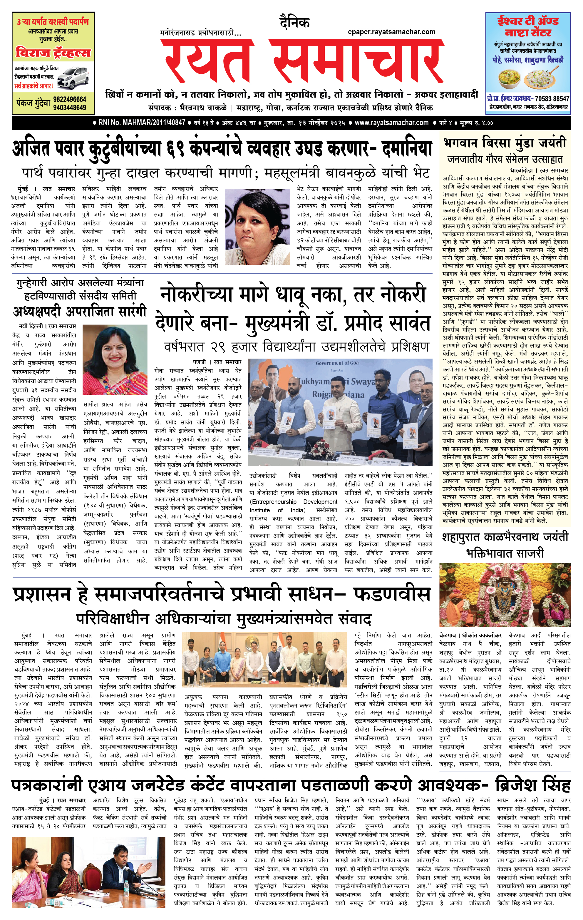 RSE: आजचा रयत समाचार वाचा 13nov2025 मनोरंजनासह प्रबोधनासाठी...