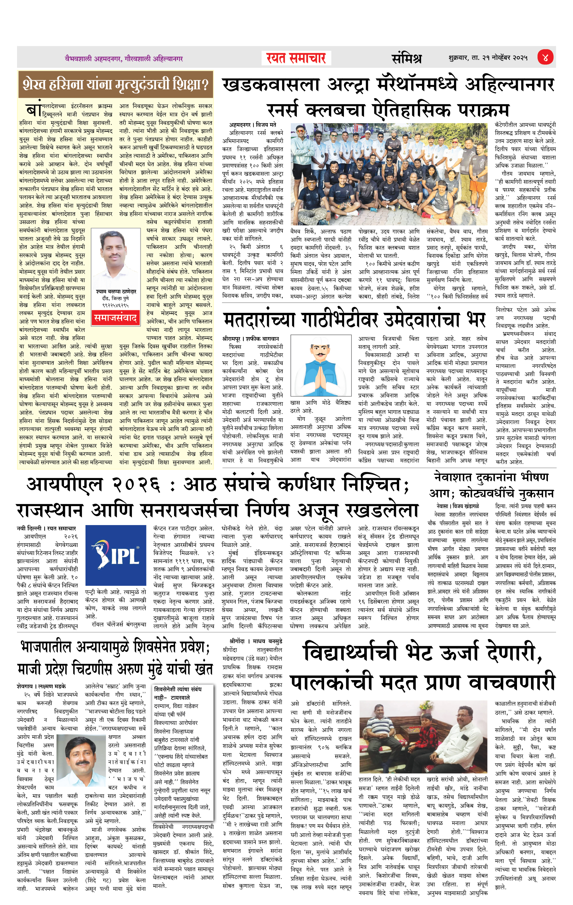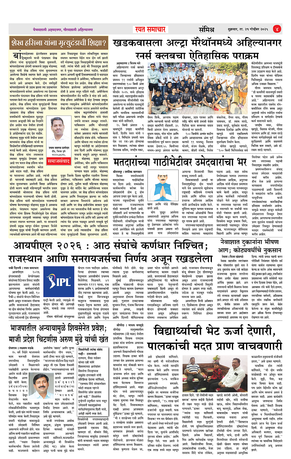 RSE: आजचा रयत समाचार वाचा 21nov2025 मनोरंजनासह प्रबोधनासाठी... Page: 4 November 21, 2025 << First << 1 2 3 4 >> Last >> Page 1Page 2Page 3Page 4 × RSE: आजचा रयत समाचार वाचा 21nov2025 मनोरंजनासह प्रबोधनासाठी... 1_Main_Page2_CITY_PAGE3_DISTRICT_PAGE4_MAHARSHTRA_PAGE << First << 4 >> Last >> 1_Main_Page2_CITY_PAGE3_DISTRICT_PAGE4_MAHARSHTRA_PAGE