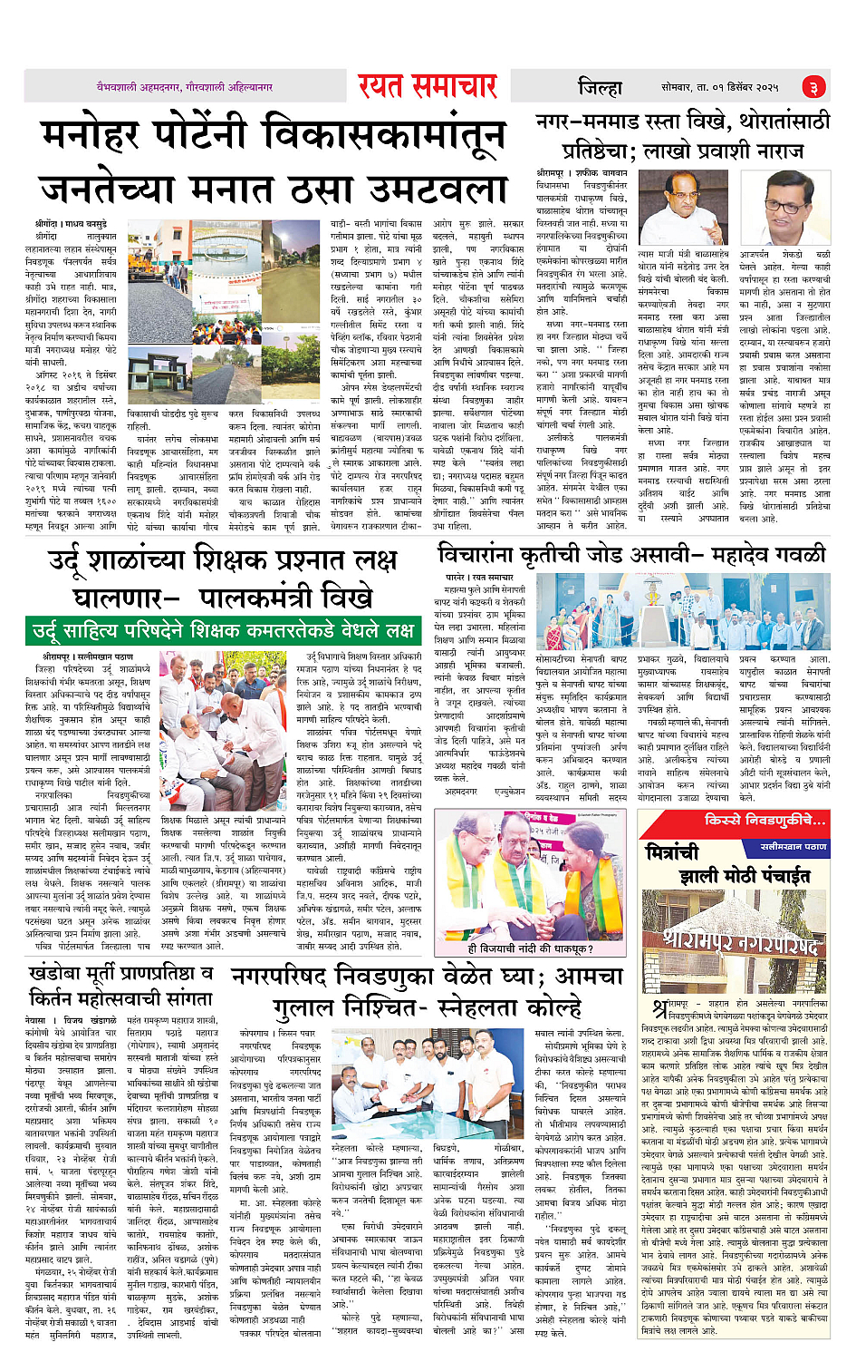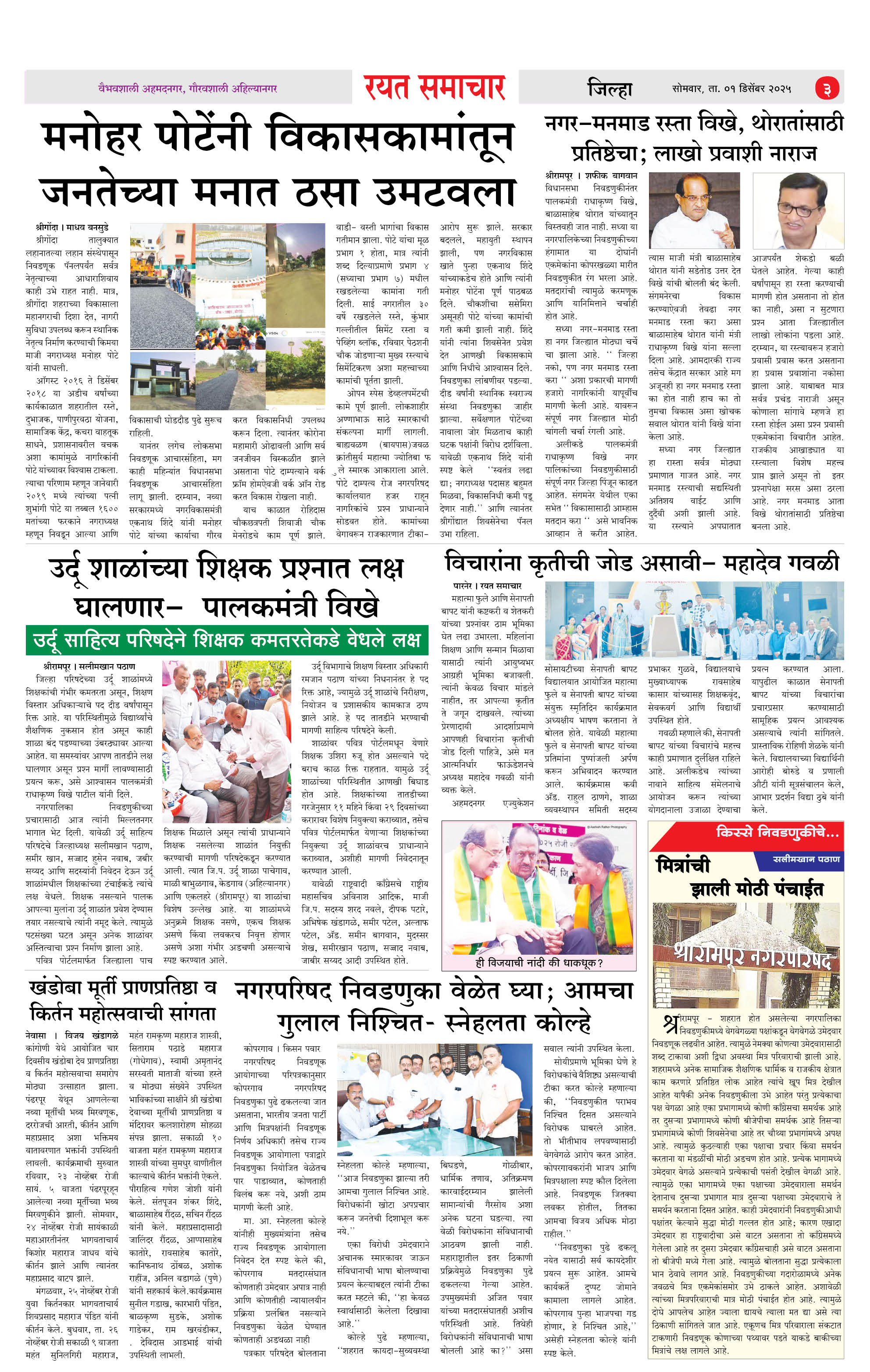 RSE: आजचा रयत समाचार वाचा 01 Dec 2025 मनोरंजनासह प्रबोधनासाठी... Page: 3 December 01, 2025 << First << 1 2 3 4 >> Last >> Page 1Page 2Page 3Page 4 × RSE: आजचा रयत समाचार वाचा 01 Dec 2025 मनोरंजनासह प्रबोधनासाठी... 1_MAIN PAGE2_CITY PAGE3_DISTRICT_PAGE4_MAHARSHTRA_PAGE Full PDF << First << 3 >> Last >> 1_MAIN PAGE2_CITY PAGE3_DISTRICT_PAGE4_MAHARSHTRA_PAGE