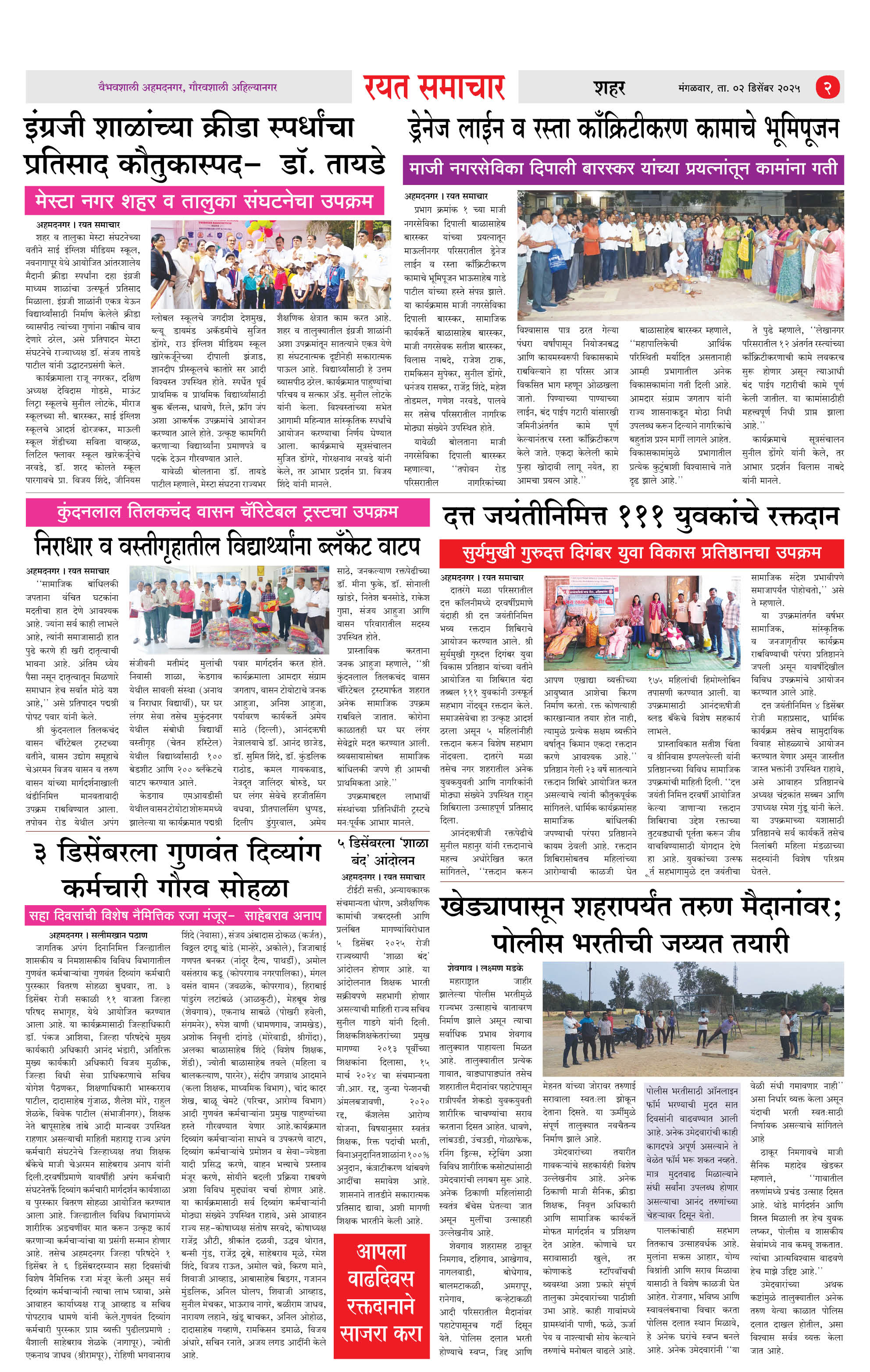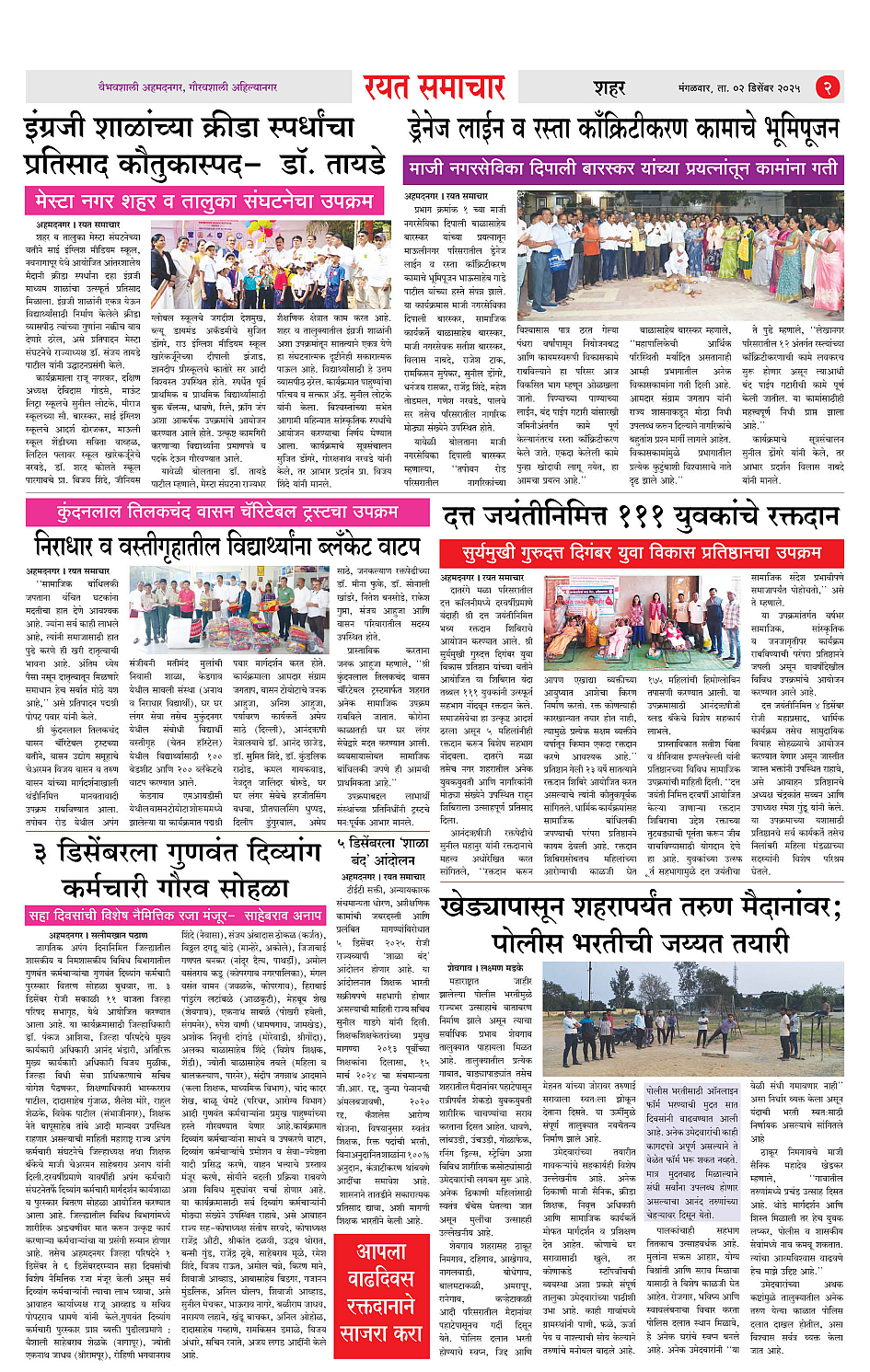 RSE: आजचा रयत समाचार वाचा 02 Dec 2025 मनोरंजनासह प्रबोधनासाठी... Page: 2 December 02, 2025 << First << 1 2 3 4 >> Last >> Page 1Page 2Page 3Page 4 × RSE: आजचा रयत समाचार वाचा 02 Dec 2025 मनोरंजनासह प्रबोधनासाठी... 1_MAIN PAGE2_CITY PAGE3_DISTRICT_PAGE4_MAHARSHTRA_PAGE Full PDF << First << 2 >> Last >> 1_MAIN PAGE2_CITY PAGE3_DISTRICT_PAGE4_MAHARSHTRA_PAGE