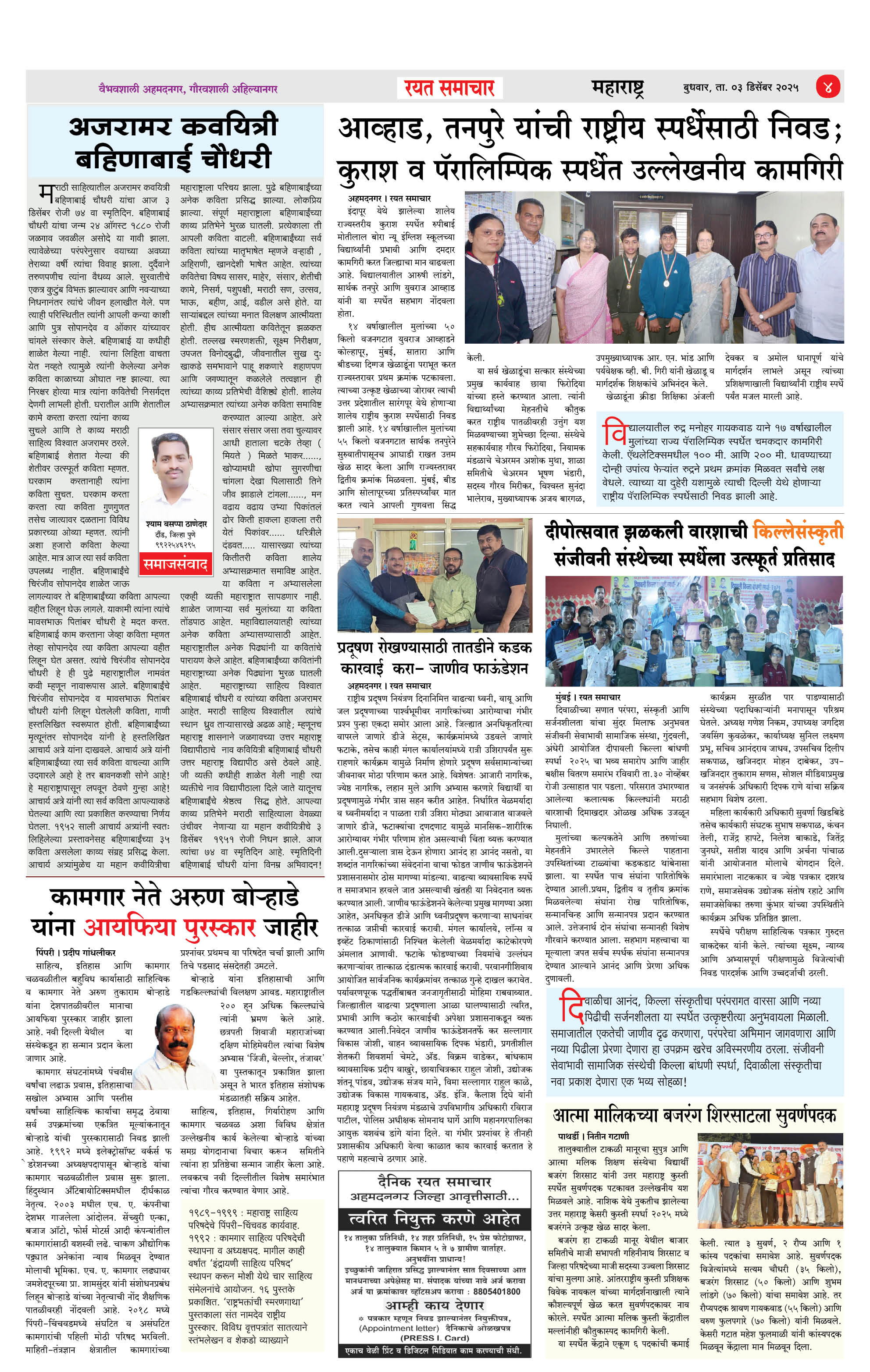 RSE: आजचा रयत समाचार वाचा 03 Dec 2025 मनोरंजनासह प्रबोधनासाठी... Page: 4 December 03, 2025 << First << 1 2 3 4 >> Last >> Page 1Page 2Page 3Page 4 × RSE: आजचा रयत समाचार वाचा 03 Dec 2025 मनोरंजनासह प्रबोधनासाठी... 1_MAIN PAGE2_CITY PAGE3_DISTRICT_PAGE4_MAHARSHTRA_PAGE Full PDF << First << 4 >> Last >> 1_MAIN PAGE2_CITY PAGE3_DISTRICT_PAGE4_MAHARSHTRA_PAGE