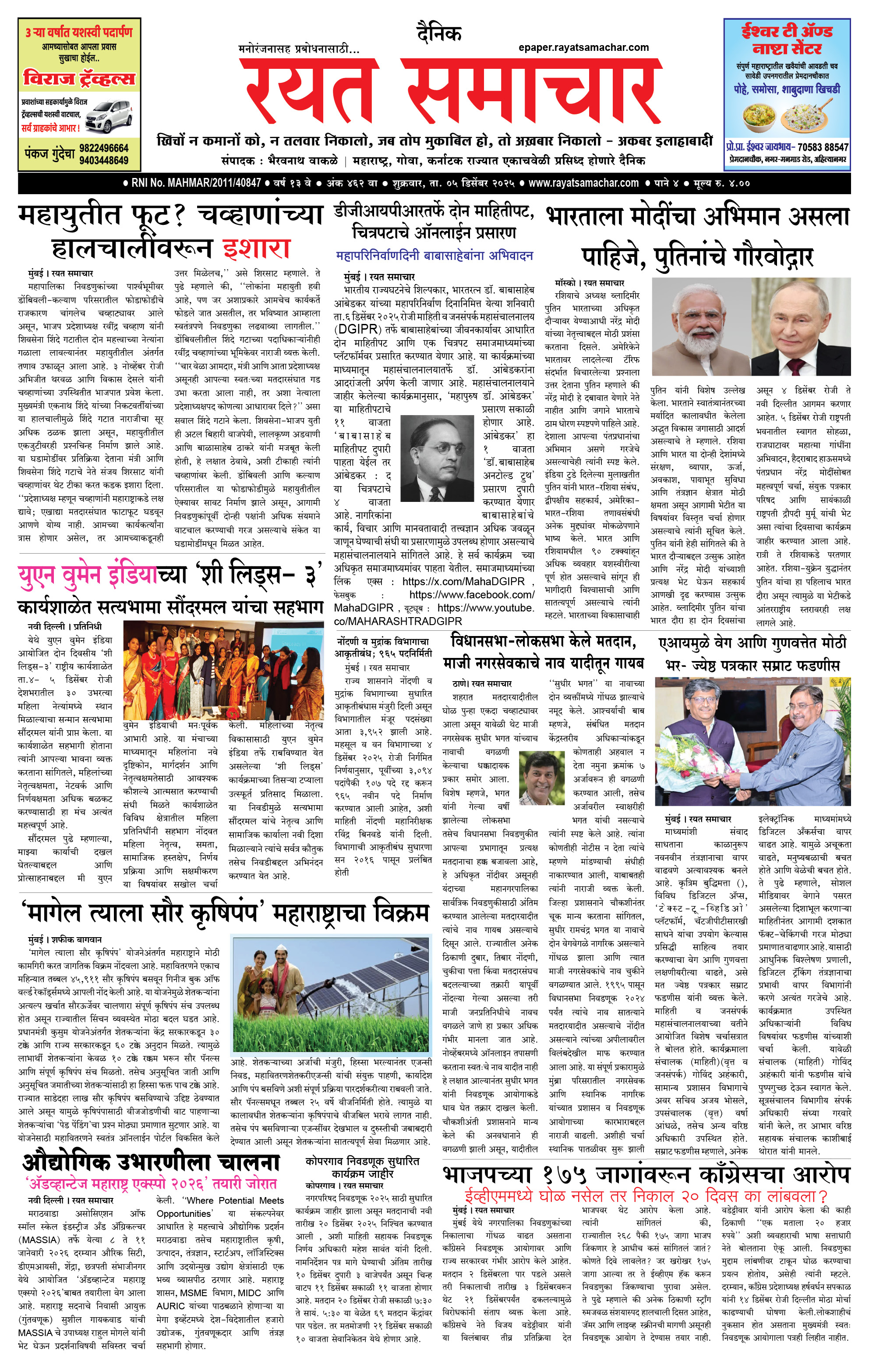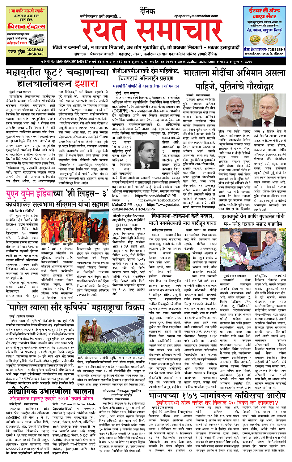 RSE: आजचा रयत समाचार वाचा 05 Dec 2025 मनोरंजनासह प्रबोधनासाठी...
