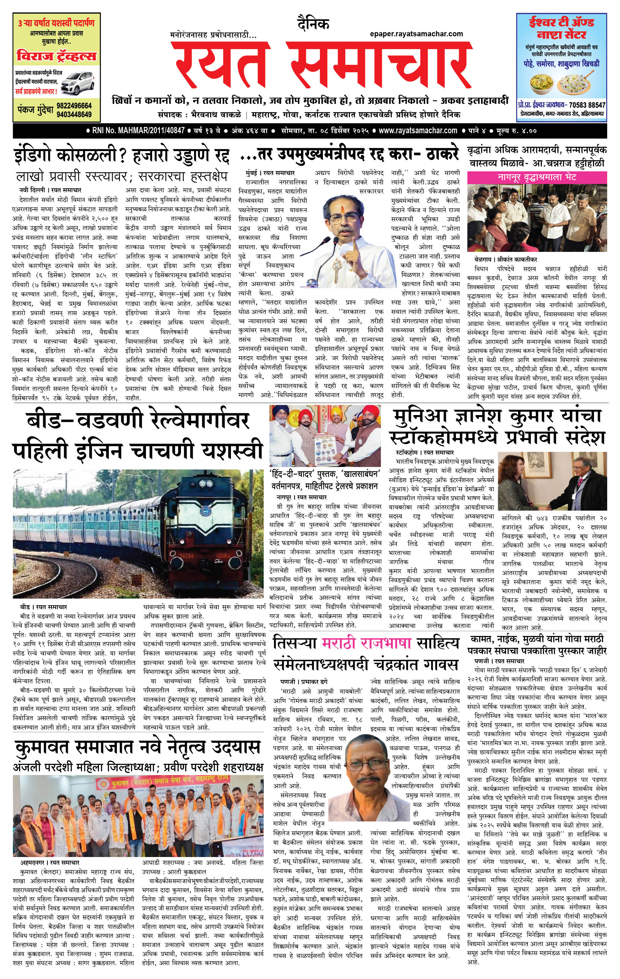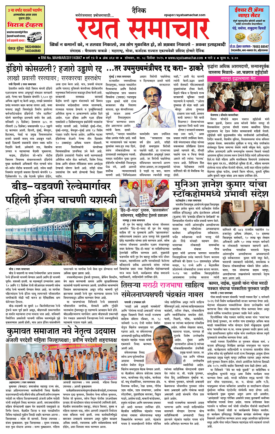 RSE: आजचा रयत समाचार वाचा 08 Dec 2025 मनोरंजनासह प्रबोधनासाठी... December 08, 2025 << First << 1 2 3 4 >> Last >> Page 1Page 2Page 3Page 4 × RSE: आजचा रयत समाचार वाचा 08 Dec 2025 मनोरंजनासह प्रबोधनासाठी... 1_MAIN PAGE2_CITY PAGE3_DISTRICT_PAGE4_MAHARSHTRA_PAGE Full PDF << First << 1 >> Last >> 1_MAIN PAGE2_CITY PAGE3_DISTRICT_PAGE4_MAHARSHTRA_PAGE