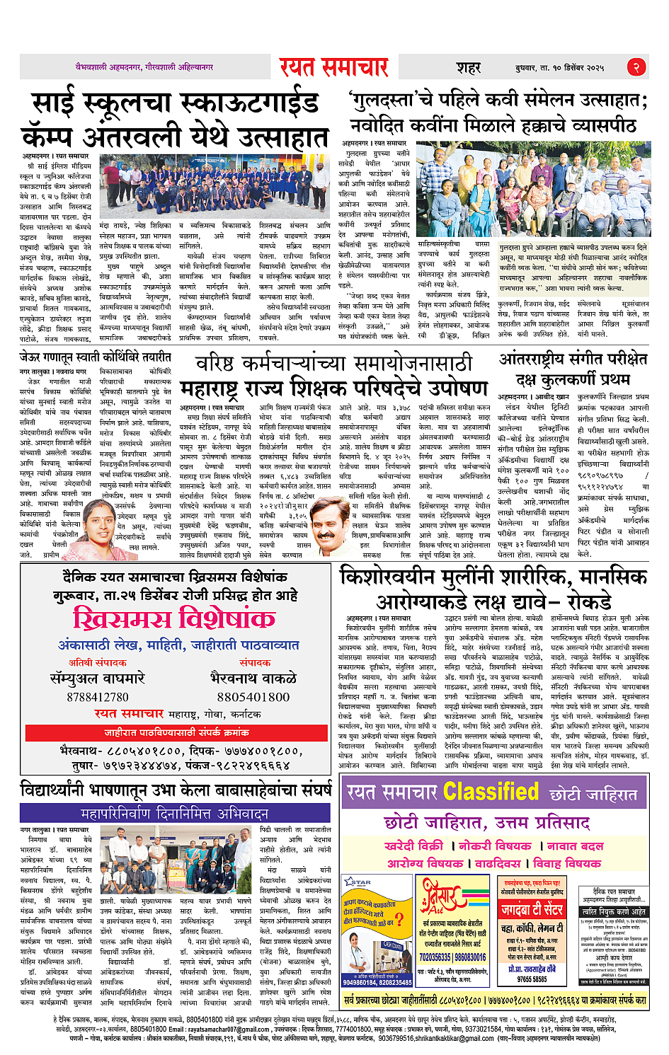 RSE: आजचा रयत समाचार वाचा 10 Dec 2025 मनोरंजनासह प्रबोधनासाठी... Page: 2 December 10, 2025 << First << 1 2 3 4 >> Last >> Page 1Page 2Page 3Page 4 × RSE: आजचा रयत समाचार वाचा 10 Dec 2025 मनोरंजनासह प्रबोधनासाठी... 1_MAIN PAGE2_CITY PAGE3_DISTRICT_PAGE4_MAHARSHTRA_PAGE Full PDF << First << 2 >> Last >> 1_MAIN PAGE2_CITY PAGE3_DISTRICT_PAGE4_MAHARSHTRA_PAGE