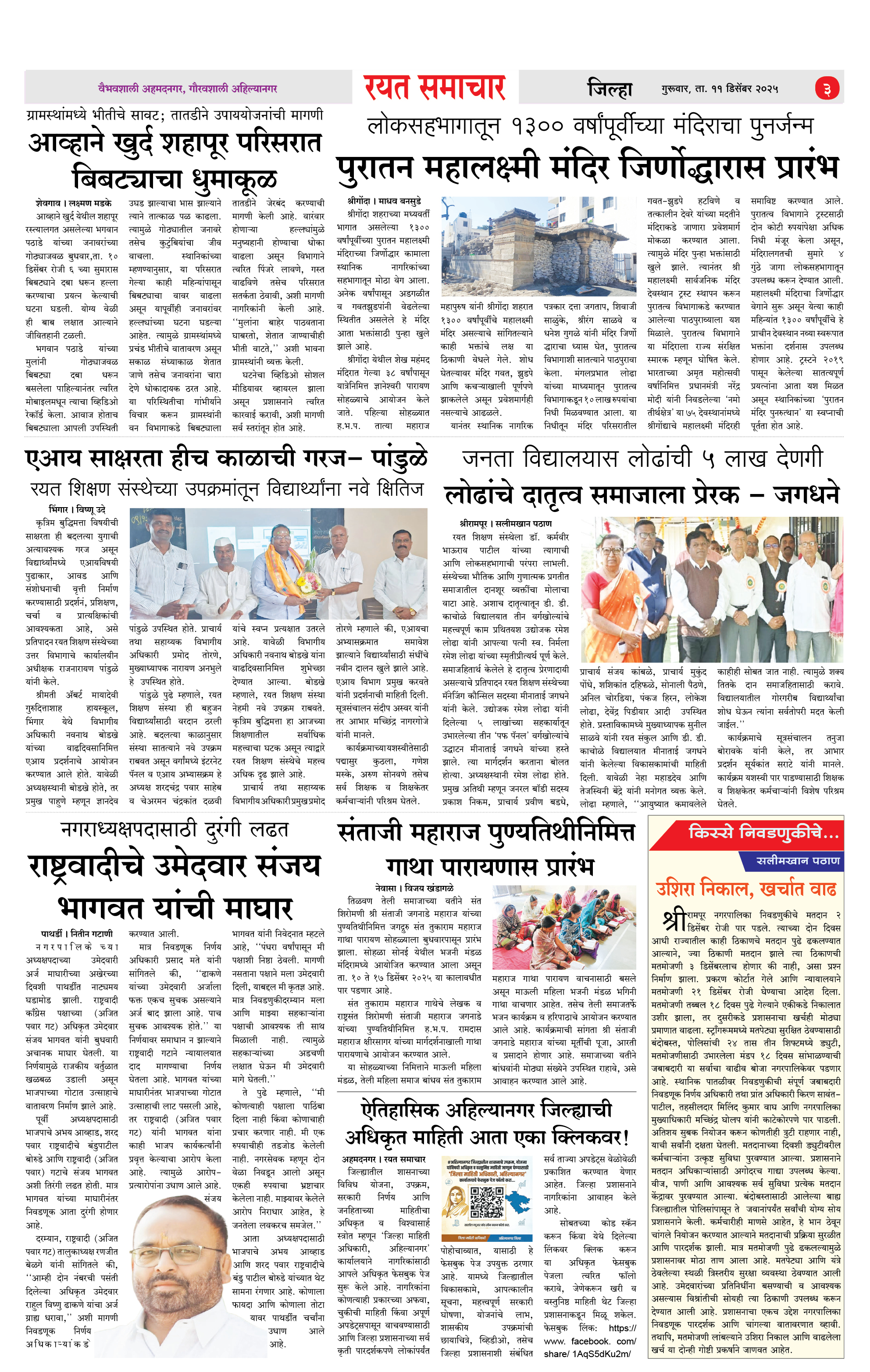 RSE: आजचा रयत समाचार वाचा 11 Dec 2025 मनोरंजनासह प्रबोधनासाठी... Page: 3 December 11, 2025 << First << 1 2 3 4 >> Last >> Page 1Page 2Page 3Page 4 × RSE: आजचा रयत समाचार वाचा 11 Dec 2025 मनोरंजनासह प्रबोधनासाठी... 1_MAIN PAGE2_CITY PAGE3_DISTRICT_PAGE4_MAHARSHTRA_PAGE Full PDF << First << 3 >> Last >> 1_MAIN PAGE2_CITY PAGE3_DISTRICT_PAGE4_MAHARSHTRA_PAGE
