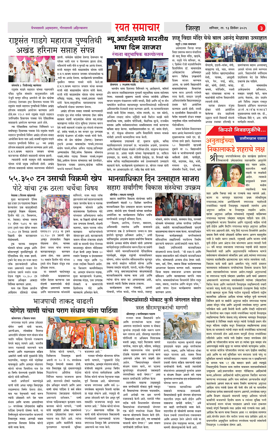 RSE: आजचा रयत समाचार वाचा 13 Dec 2025 मनोरंजनासह प्रबोधनासाठी... Page: 3 December 13, 2025 << First << 1 2 3 4 >> Last >> Page 1Page 2Page 3Page 4 × RSE: आजचा रयत समाचार वाचा 13 Dec 2025 मनोरंजनासह प्रबोधनासाठी... 1_MAIN PAGE2_CITY PAGE3_DISTRICT_PAGE4_MAHARSHTRA_PAGE Full PDF << First << 3 >> Last >> 1_MAIN PAGE2_CITY PAGE3_DISTRICT_PAGE4_MAHARSHTRA_PAGE