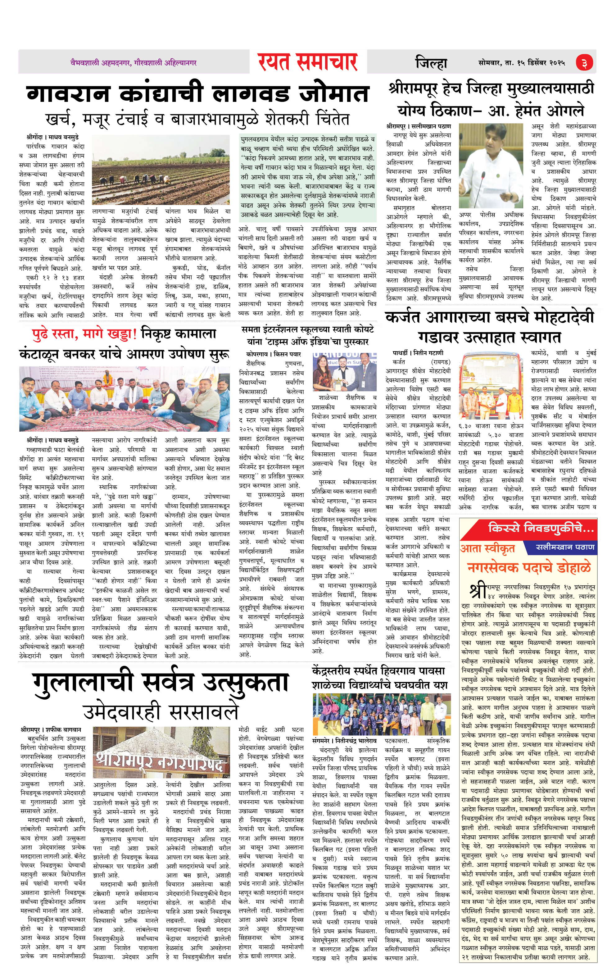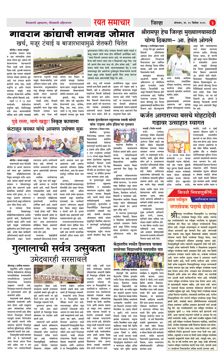 RSE: आजचा रयत समाचार वाचा 15 Dec 2025 मनोरंजनासह प्रबोधनासाठी... Page: 3 December 15, 2025 << First << 1 2 3 4 >> Last >> Page 1Page 2Page 3Page 4 × RSE: आजचा रयत समाचार वाचा 15 Dec 2025 मनोरंजनासह प्रबोधनासाठी... 1_MAIN PAGE2_CITY PAGE3_DISTRICT_PAGE4_MAHARSHTRA_PAGE Full PDF << First << 3 >> Last >> 1_MAIN PAGE2_CITY PAGE3_DISTRICT_PAGE4_MAHARSHTRA_PAGE