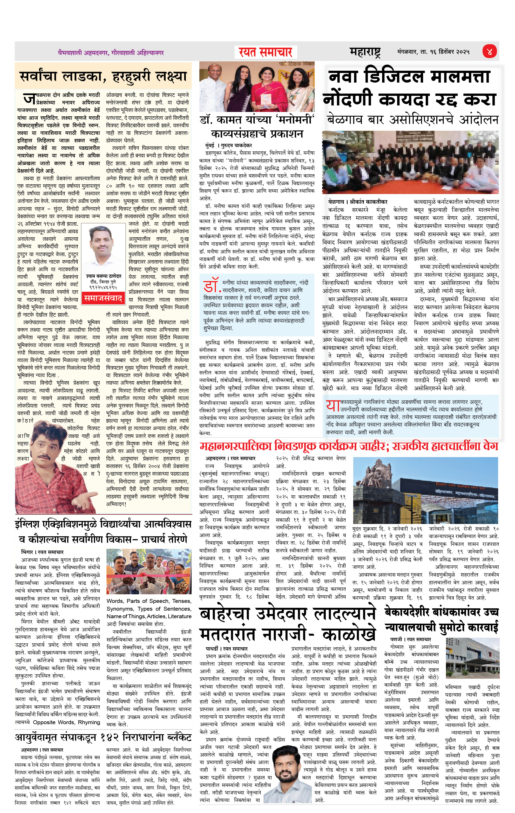 RSE: आजचा रयत समाचार वाचा 16 Dec 2025 मनोरंजनासह प्रबोधनासाठी... Page: 4 December 16, 2025 << First << 1 2 3 4 >> Last >> Page 1Page 2Page 3Page 4 × RSE: आजचा रयत समाचार वाचा 16 Dec 2025 मनोरंजनासह प्रबोधनासाठी... 1_MAIN PAGE2_CITY PAGE3_DISTRICT_PAGE4_MAHARSHTRA_PAGE Full PDF << First << 4 >> Last >> 1_MAIN PAGE2_CITY PAGE3_DISTRICT_PAGE4_MAHARSHTRA_PAGE