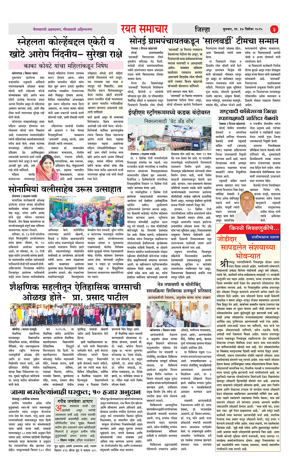RSE: आजचा रयत समाचार वाचा 17 Dec 2025 मनोरंजनासह प्रबोधनासाठी... Page: 3 December 17, 2025 << First << 1 2 3 4 >> Last >> Page 1Page 2Page 3Page 4 × RSE: आजचा रयत समाचार वाचा 17 Dec 2025 मनोरंजनासह प्रबोधनासाठी... 1_MAIN PAGE2_CITY PAGE3_DISTRICT_PAGE4_MAHARSHTRA_PAGE Full PDF << First << 3 >> Last >> 1_MAIN PAGE2_CITY PAGE3_DISTRICT_PAGE4_MAHARSHTRA_PAGE