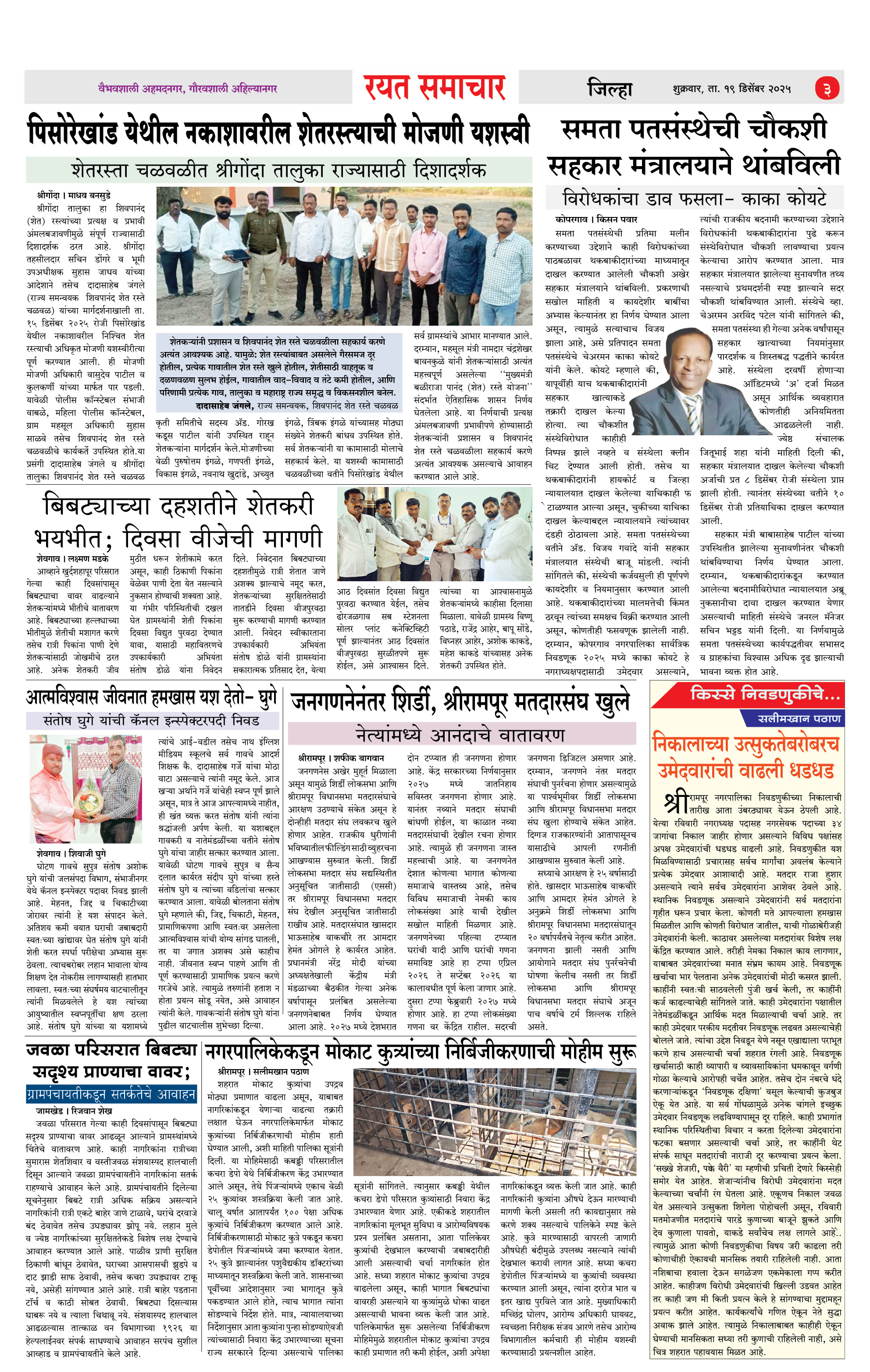 RSE: आजचा रयत समाचार वाचा 19 Dec 2025 मनोरंजनासह प्रबोधनासाठी... Page: 3 December 19, 2025 << First << 1 2 3 4 >> Last >> Page 1Page 2Page 3Page 4 × RSE: आजचा रयत समाचार वाचा 19 Dec 2025 मनोरंजनासह प्रबोधनासाठी... 1_MAIN PAGE2_CITY PAGE3_DISTRICT_PAGE4_MAHARSHTRA_PAGE Full PDF << First << 3 >> Last >> 1_MAIN PAGE2_CITY PAGE3_DISTRICT_PAGE4_MAHARSHTRA_PAGE