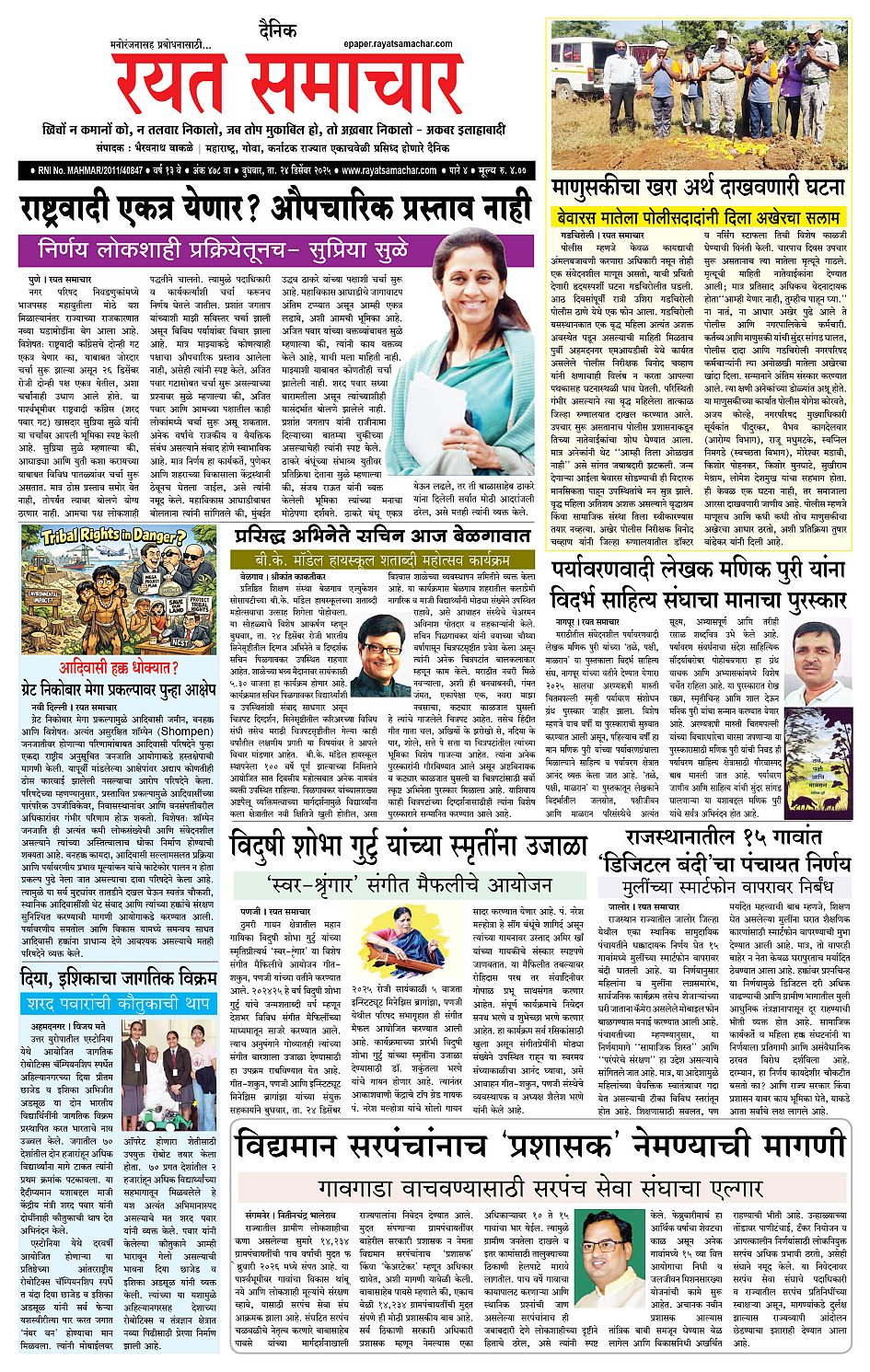 RSE: आजचा रयत समाचार वाचा 24 Dec 2025 मनोरंजनासह प्रबोधनासाठी... December 24, 2025 << First << 1 2 3 4 >> Last >> Page 1Page 2Page 3Page 4 × RSE: आजचा रयत समाचार वाचा 24 Dec 2025 मनोरंजनासह प्रबोधनासाठी... 1_MAIN PAGE2_CITY PAGE3_DISTRICT_PAGE4_MAHARSHTRA_PAGE Full PDF << First << 1 >> Last >> 1_MAIN PAGE2_CITY PAGE3_DISTRICT_PAGE4_MAHARSHTRA_PAGE