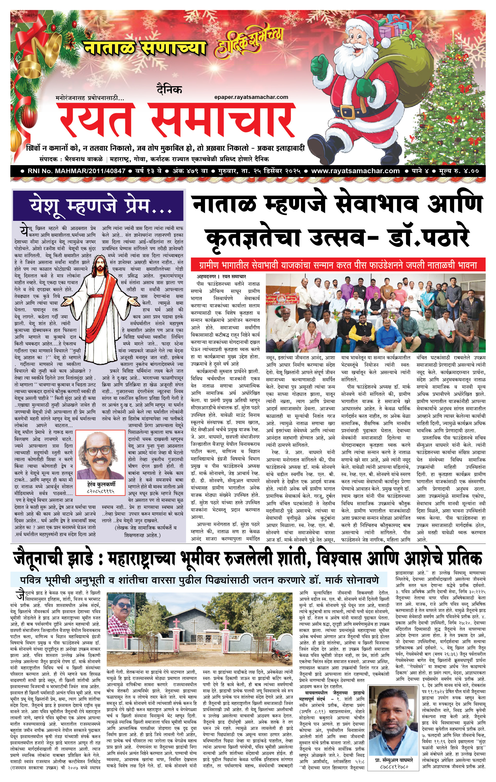 RSE: आजचा रयत समाचार वाचा 25 Dec 2025 मनोरंजनासह प्रबोधनासाठी... December 25, 2025 << First << 1 2 3 4 >> Last >> Page 1Page 2Page 3Page 4 × RSE: आजचा रयत समाचार वाचा 25 Dec 2025 मनोरंजनासह प्रबोधनासाठी... 1_Main_Page2_CITY_PAGE3_DISTRICT_PAGE4_MAHARSHTRA_PAGE Full PDF << First << 1 >> Last >> 1_Main_Page2_CITY_PAGE3_DISTRICT_PAGE4_MAHARSHTRA_PAGE