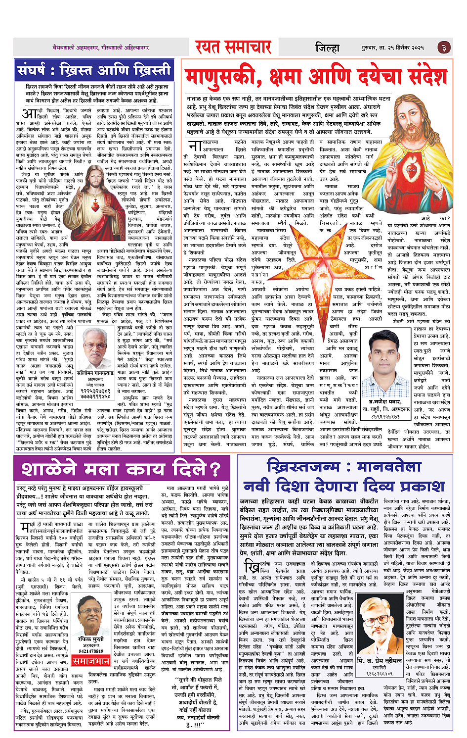 RSE: आजचा रयत समाचार वाचा 25 Dec 2025 मनोरंजनासह प्रबोधनासाठी... Page: 3 December 25, 2025 << First << 1 2 3 4 >> Last >> Page 1Page 2Page 3Page 4 × RSE: आजचा रयत समाचार वाचा 25 Dec 2025 मनोरंजनासह प्रबोधनासाठी... 1_Main_Page2_CITY_PAGE3_DISTRICT_PAGE4_MAHARSHTRA_PAGE Full PDF << First << 3 >> Last >> 1_Main_Page2_CITY_PAGE3_DISTRICT_PAGE4_MAHARSHTRA_PAGE