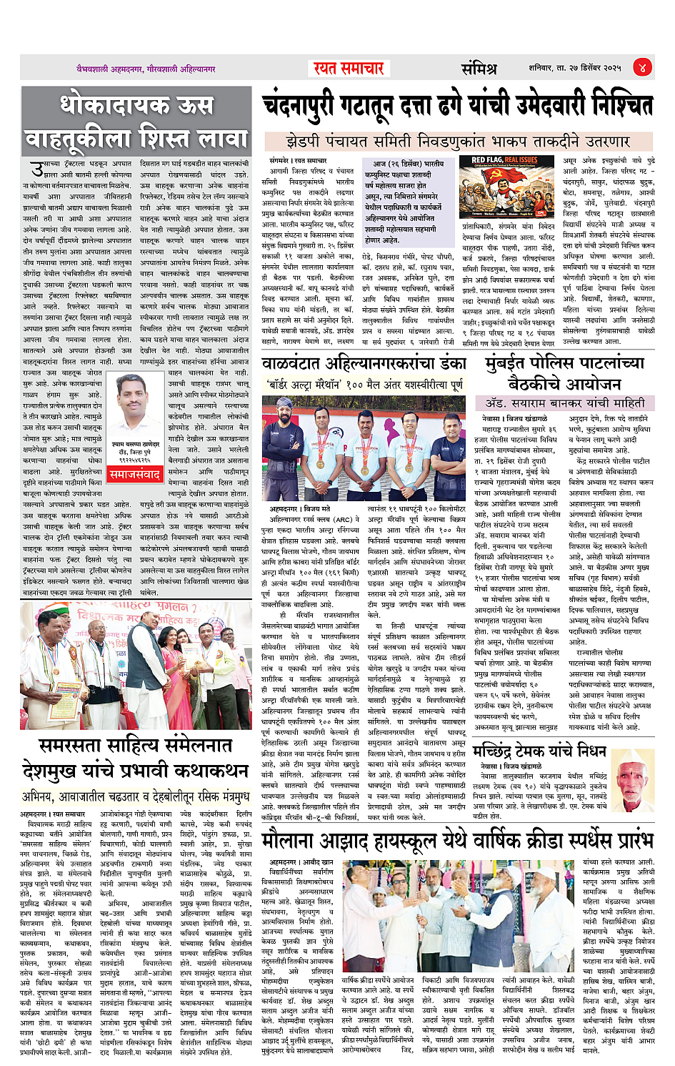 RSE: आजचा रयत समाचार वाचा 27 Dec 2025 मनोरंजनासह प्रबोधनासाठी... Page: 4 December 27, 2025 << First << 1 2 3 4 >> Last >> Page 1Page 2Page 3Page 4 × RSE: आजचा रयत समाचार वाचा 27 Dec 2025 मनोरंजनासह प्रबोधनासाठी... 1_MAIN PAGE2_CITY PAGE3_DISTRICT_PAGE4_MAHARSHTRA_PAGE Full PDF << First << 4 >> Last >> 1_MAIN PAGE2_CITY PAGE3_DISTRICT_PAGE4_MAHARSHTRA_PAGE