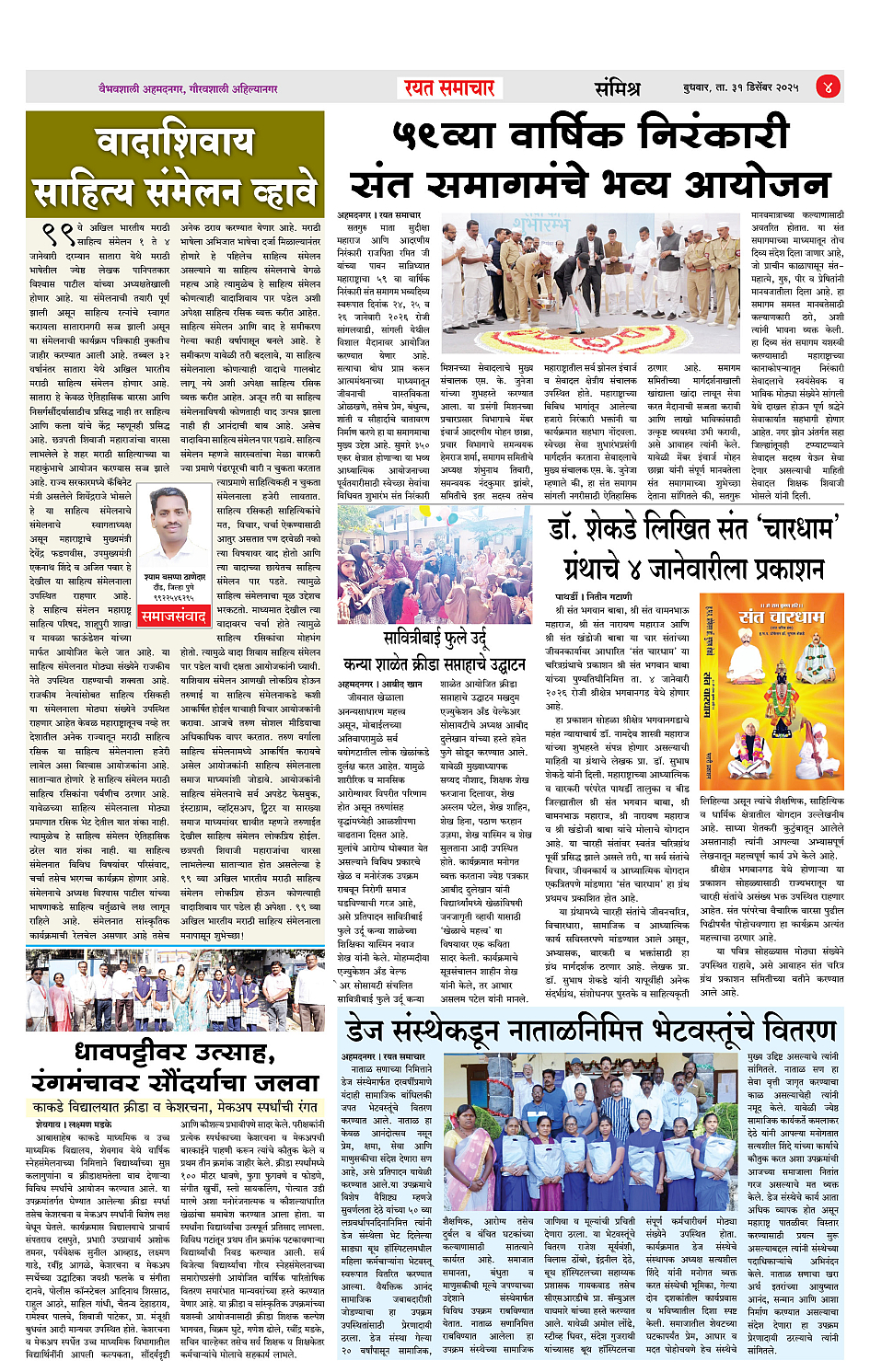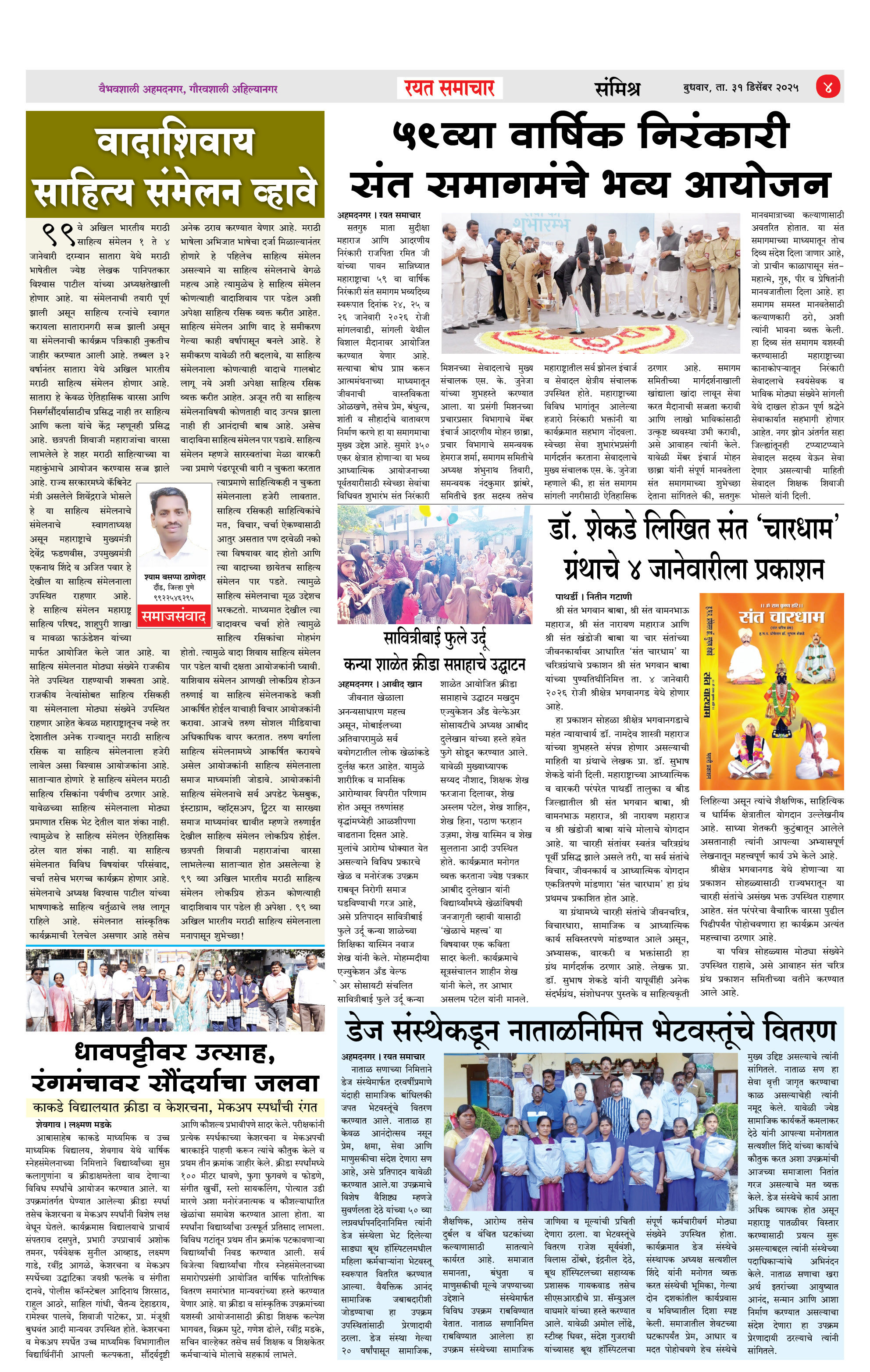 RSE: आजचा रयत समाचार वाचा 31 Dec 2025 मनोरंजनासह प्रबोधनासाठी... Page: 4 December 31, 2025 << First << 1 2 3 4 >> Last >> Page 1Page 2Page 3Page 4 × RSE: आजचा रयत समाचार वाचा 31 Dec 2025 मनोरंजनासह प्रबोधनासाठी... 1_MAIN PAGE2_CITY PAGE3_DISTRICT_PAGE4_MAHARSHTRA_PAGE Full PDF << First << 4 >> Last >> 1_MAIN PAGE2_CITY PAGE3_DISTRICT_PAGE4_MAHARSHTRA_PAGE