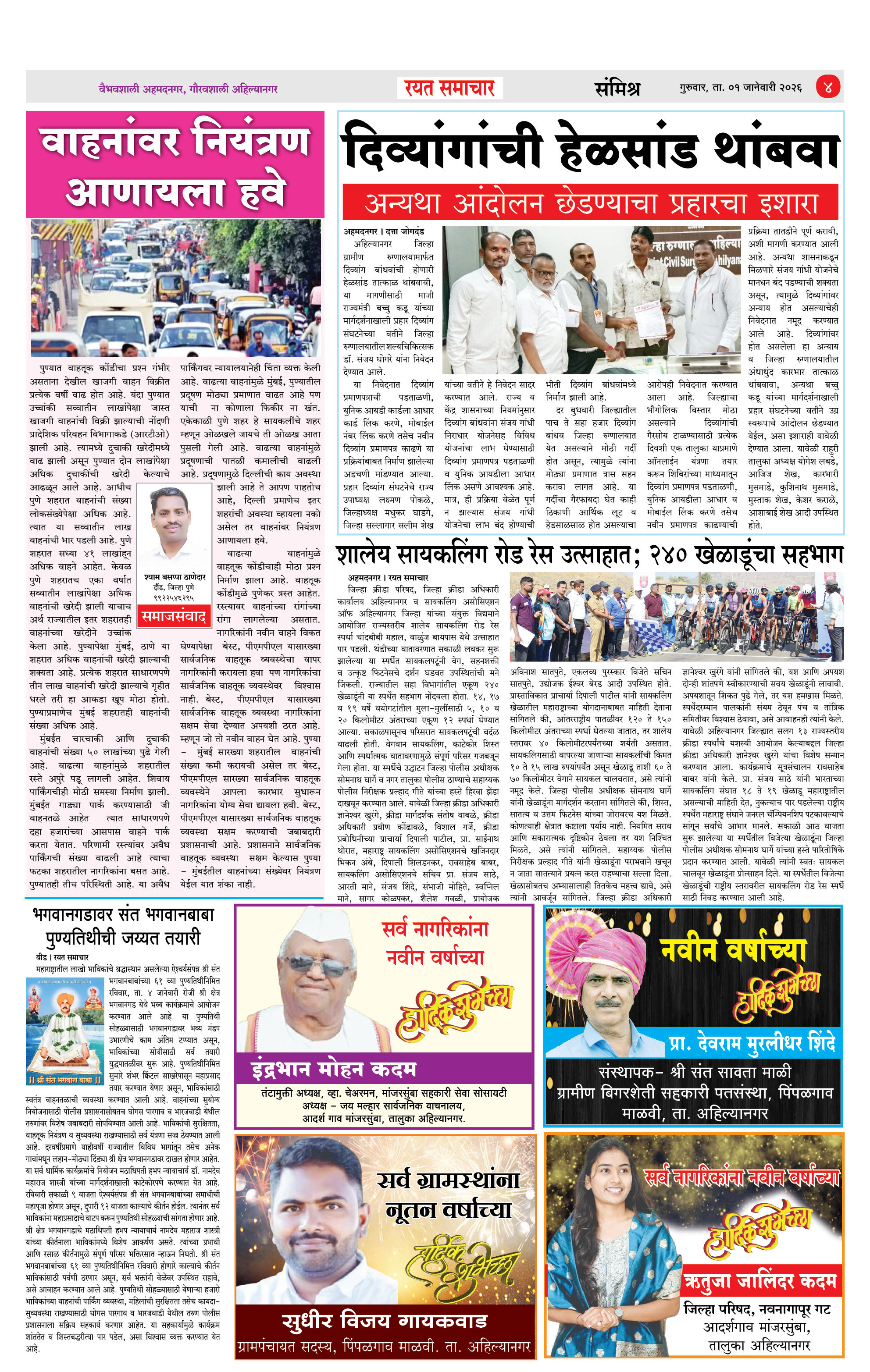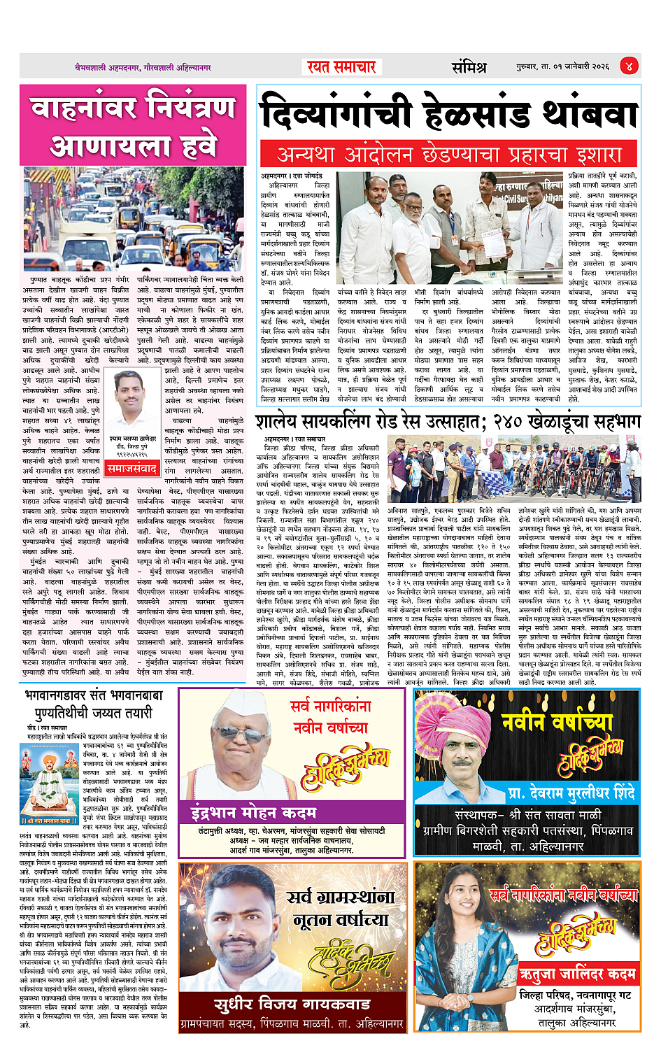 RSE: आजचा रयत समाचार वाचा 1 Jan 2026 मनोरंजनासह प्रबोधनासाठी... Page: 4 January 01, 2026 << First << 1 2 3 4 >> Last >> Page 1Page 2Page 3Page 4 × RSE: आजचा रयत समाचार वाचा 1 Jan 2026 मनोरंजनासह प्रबोधनासाठी... 1_MAIN PAGE2_CITY PAGE3_DISTRICT_PAGE4_MAHARSHTRA_PAGE Full PDF << First << 4 >> Last >> 1_MAIN PAGE2_CITY PAGE3_DISTRICT_PAGE4_MAHARSHTRA_PAGE