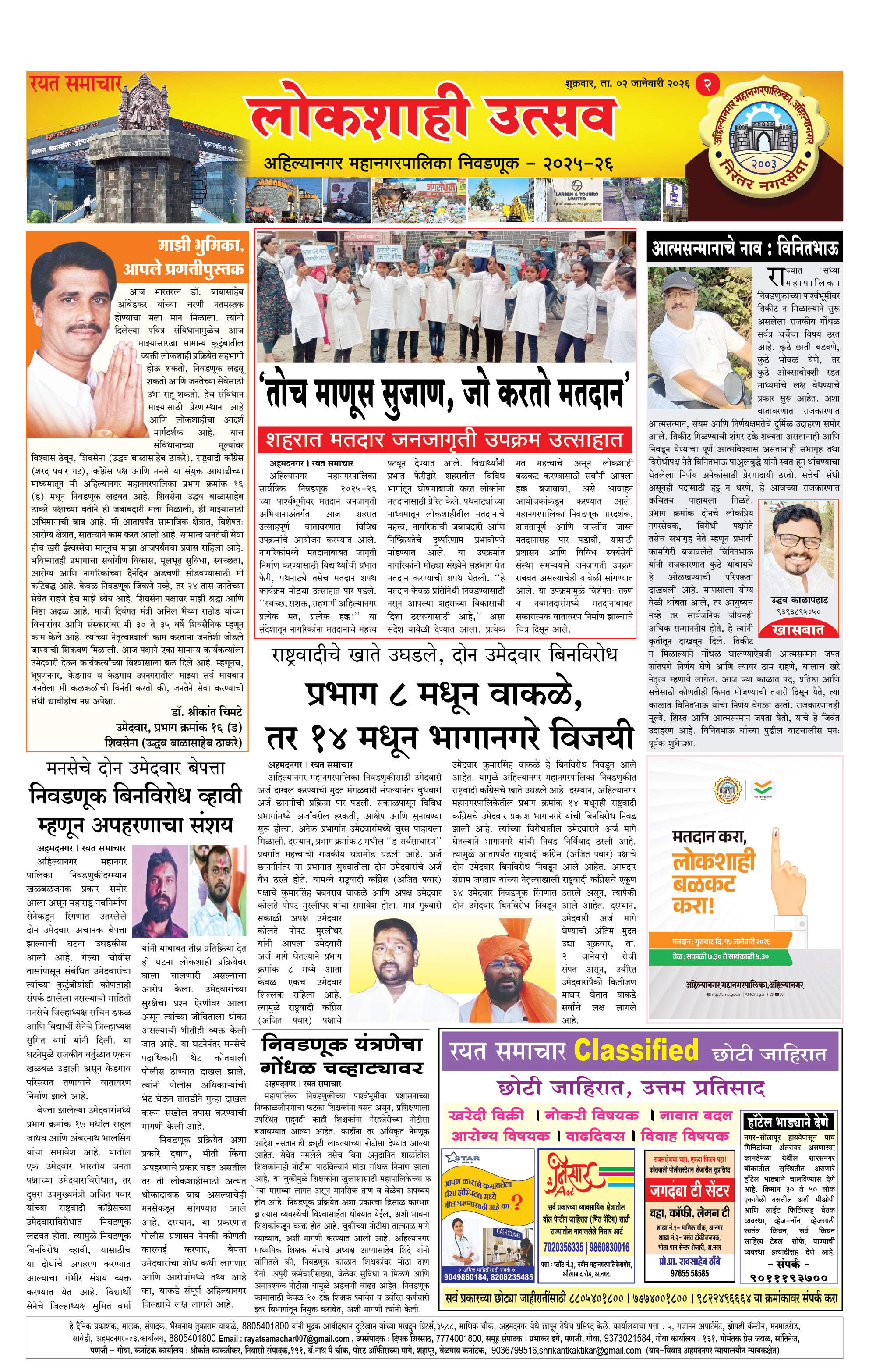 RSE: आजचा रयत समाचार वाचा 2 Jan 2026 मनोरंजनासह प्रबोधनासाठी... Page: 2 January 02, 2026 << First << 1 2 3 4 >> Last >> Page 1Page 2Page 3Page 4 × RSE: आजचा रयत समाचार वाचा 2 Jan 2026 मनोरंजनासह प्रबोधनासाठी... 1_MAIN PAGE2_CITY PAGE3_DISTRICT_PAGE4_MAHARSHTRA_PAGE Full PDF << First << 2 >> Last >> 1_MAIN PAGE2_CITY PAGE3_DISTRICT_PAGE4_MAHARSHTRA_PAGE
