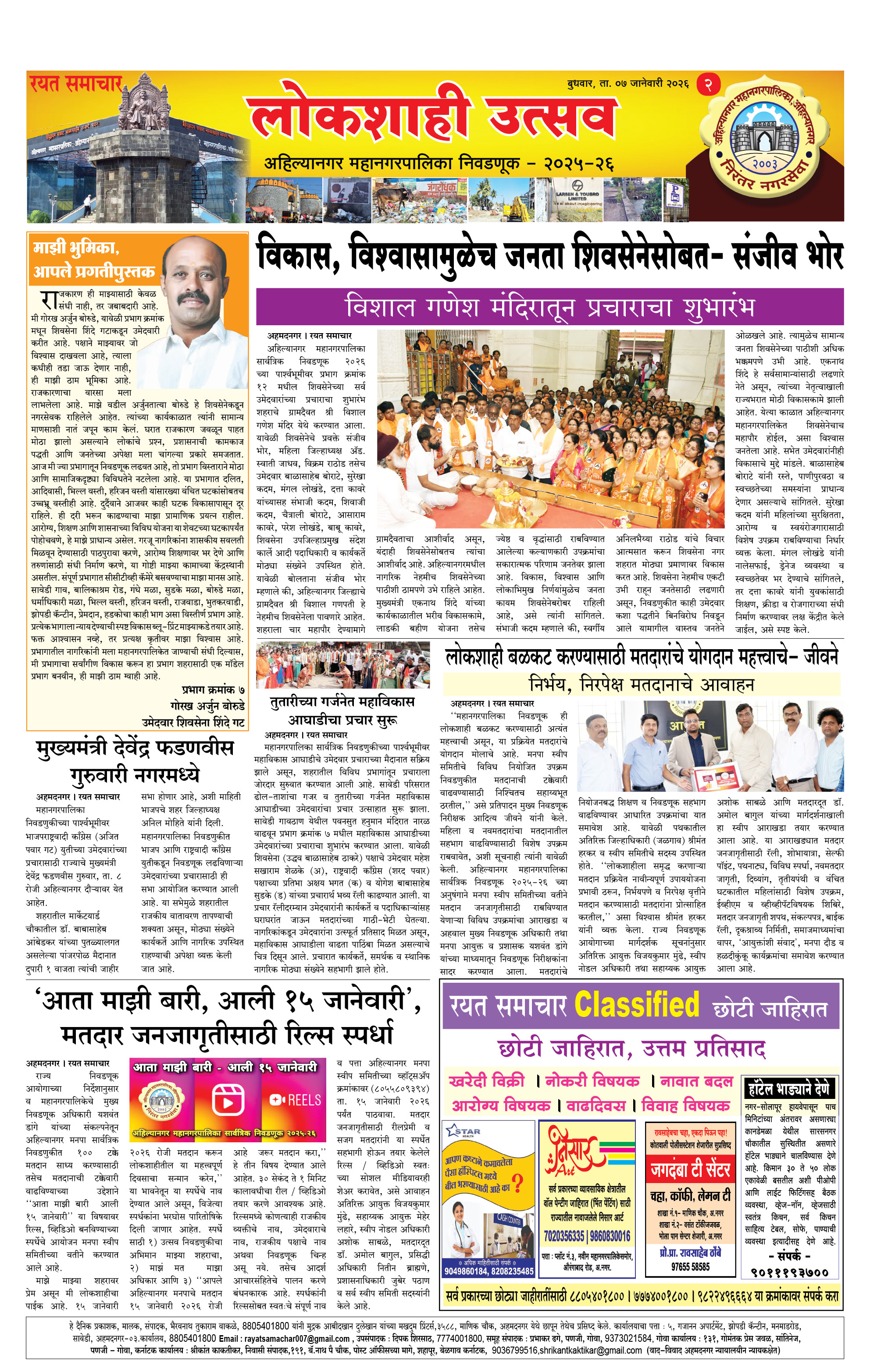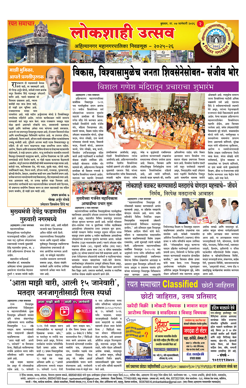 RSE: आजचा रयत समाचार वाचा 07 Jan 2026 मनोरंजनासह प्रबोधनासाठी... Page: 2 January 07, 2026 << First << 1 2 3 4 >> Last >> Page 1Page 2Page 3Page 4 × RSE: आजचा रयत समाचार वाचा 07 Jan 2026 मनोरंजनासह प्रबोधनासाठी... 1_MAIN PAGE2_CITY PAGE3_DISTRICT_PAGE4_MAHARSHTRA_PAGE Full PDF << First << 2 >> Last >> 1_MAIN PAGE2_CITY PAGE3_DISTRICT_PAGE4_MAHARSHTRA_PAGE