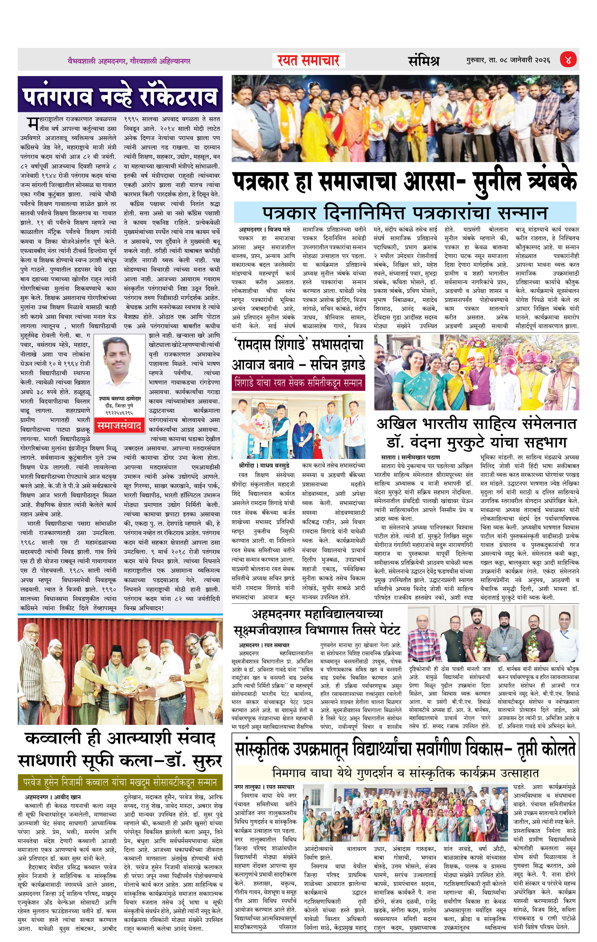 RSE: आजचा रयत समाचार वाचा 08 Jan 2026 मनोरंजनासह प्रबोधनासाठी... Page: 4 January 08, 2026 << First << 1 2 3 4 >> Last >> Page 1Page 2Page 3Page 4 × RSE: आजचा रयत समाचार वाचा 08 Jan 2026 मनोरंजनासह प्रबोधनासाठी... 1_MAIN PAGE2_CITY PAGE3_DISTRICT_PAGE4_MAHARSHTRA_PAGE Full PDF << First << 4 >> Last >> 1_MAIN PAGE2_CITY PAGE3_DISTRICT_PAGE4_MAHARSHTRA_PAGE