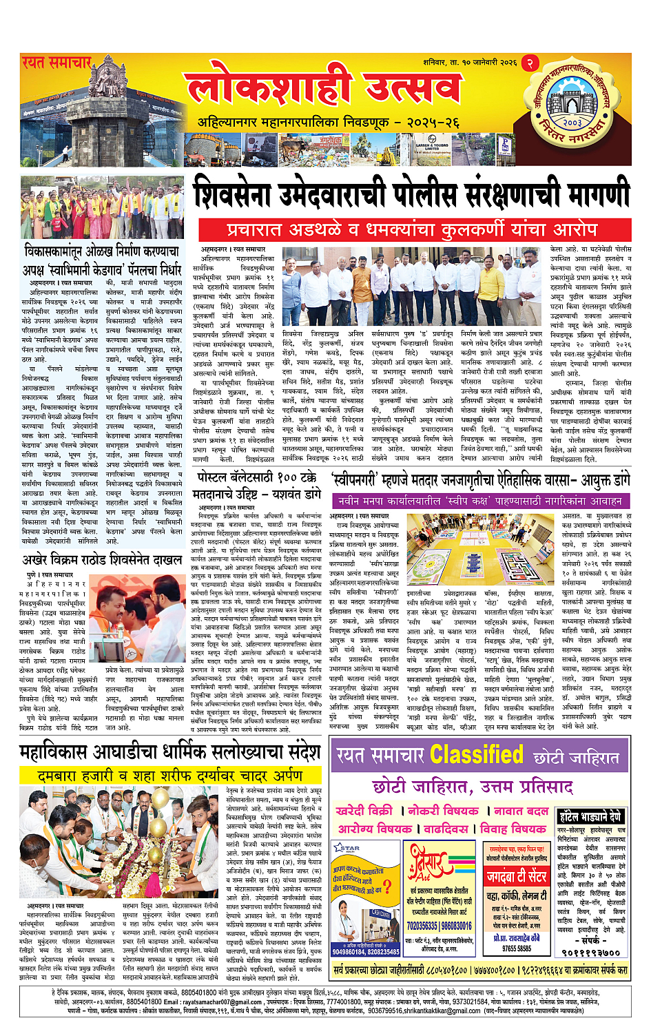 RSE: आजचा रयत समाचार वाचा 10 Jan 2026 मनोरंजनासह प्रबोधनासाठी... Page: 2 January 10, 2026 << First << 1 2 3 4 >> Last >> Page 1Page 2Page 3Page 4 × RSE: आजचा रयत समाचार वाचा 10 Jan 2026 मनोरंजनासह प्रबोधनासाठी... 1_Main_Page2_CITY_PAGE3_DISTRICT_PAGE4_MAHARSHTRA_PAGE Full PDF << First << 2 >> Last >> 1_Main_Page2_CITY_PAGE3_DISTRICT_PAGE4_MAHARSHTRA_PAGE